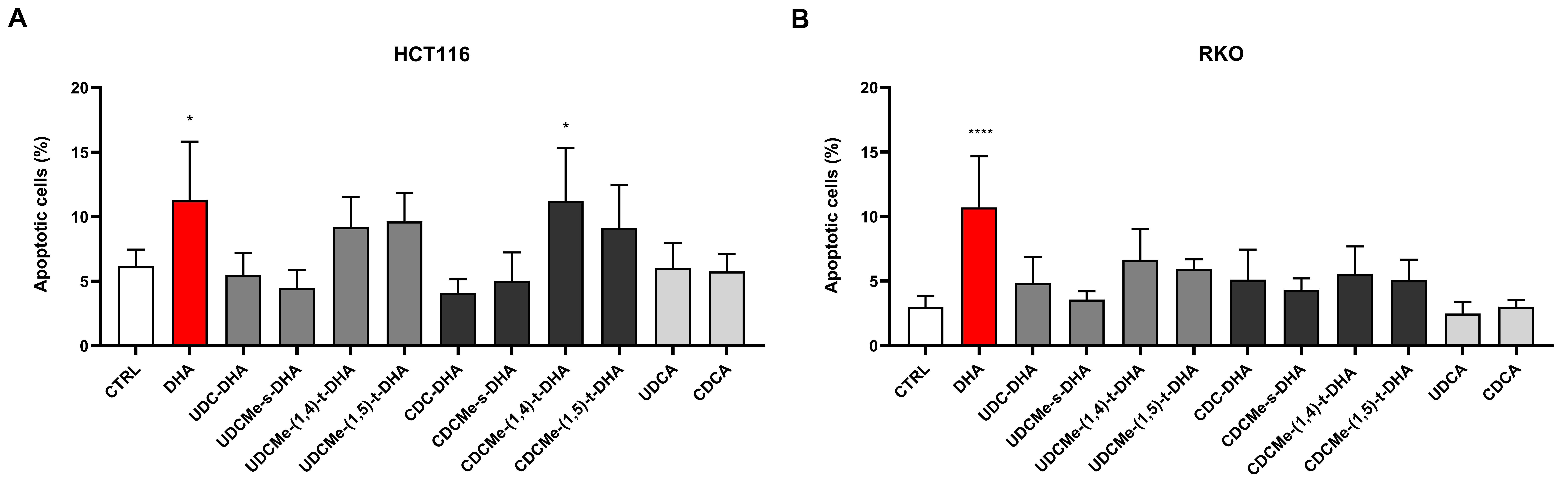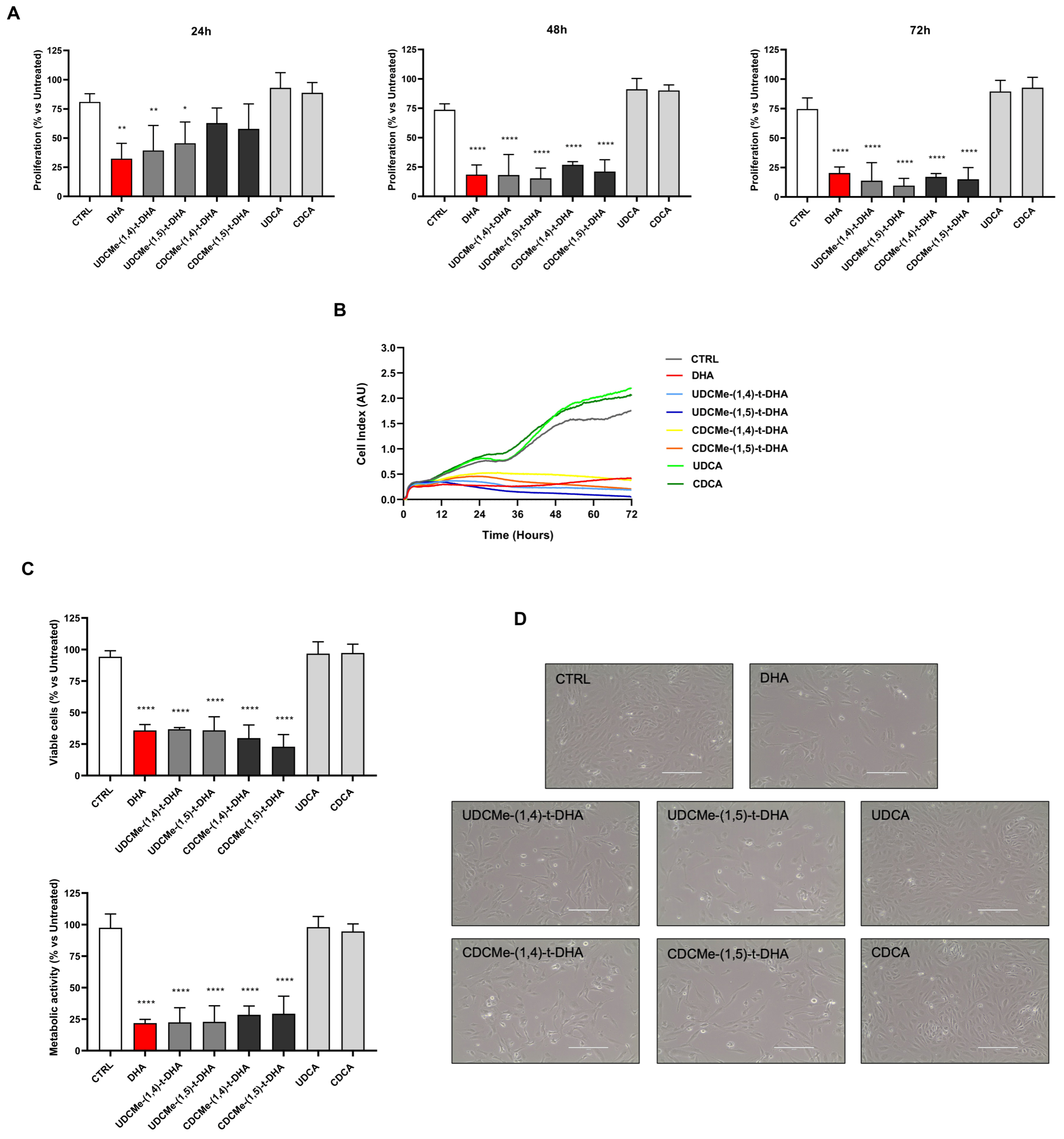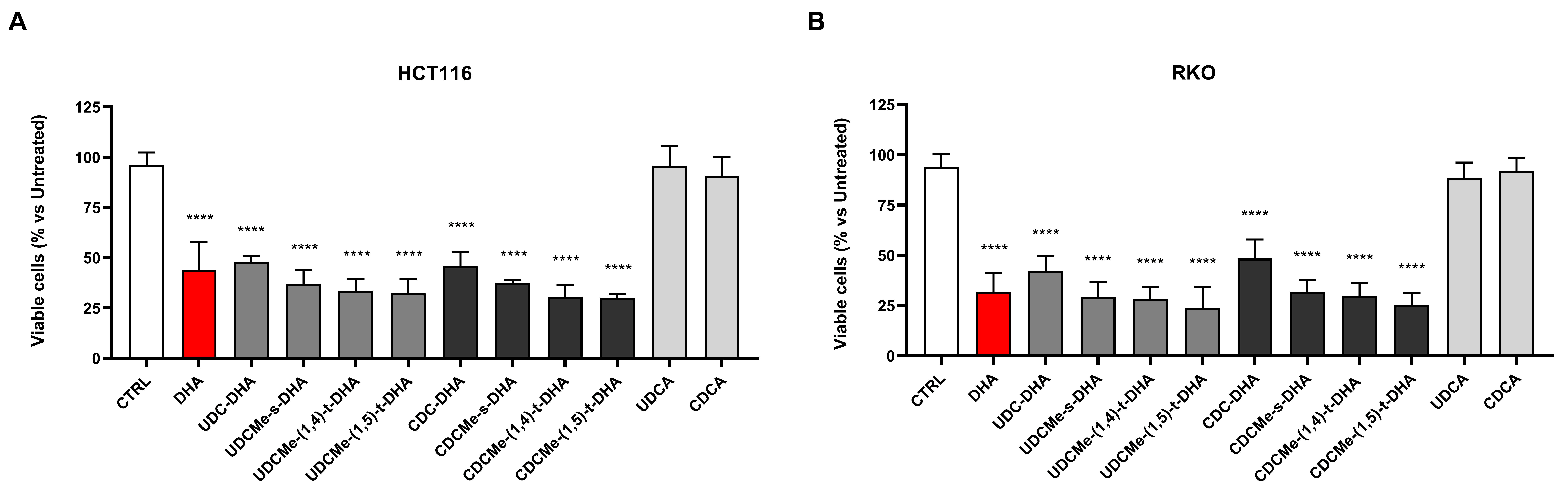 - Huang, T.-E.; Deng, Y.-N.; Hsu, J.-L.; Leu, W.-J.; Marchesi, E.; Capobianco, M.L.; Marchetti, P.; Navacchia, M.L.; Guh, J.-H.; Perrone, D.; et al. Evaluation of the Anticancer Activity of a Bile Acid-Dihydroartemisinin Hybrid Ursodeoxycholic-Dihydroartemisinin in Hepatocellular Carcinoma Cells. Front. Pharmacol. 2020, 11, 599067. [Google Scholar] [CrossRef]