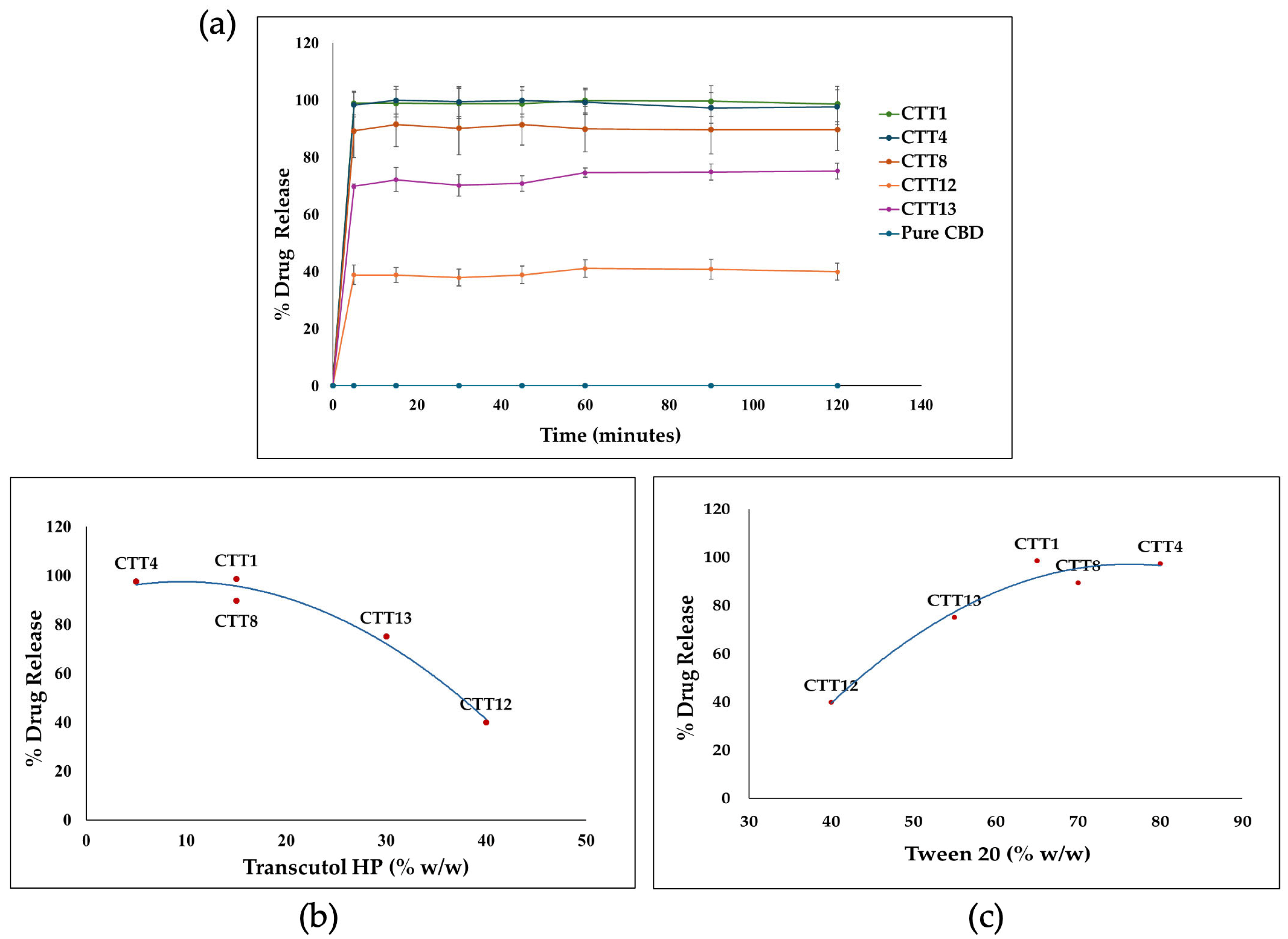 - Sanil, K.; Almotairy, A.; Uttreja, P.; Ashour, E.A. Formulation development and evaluation of cannabidiol hot-melt extruded solid self-emulsifying drug delivery system for oral applications. AAPS PharmSciTech 2024, 25, 136. [Google Scholar] [CrossRef]