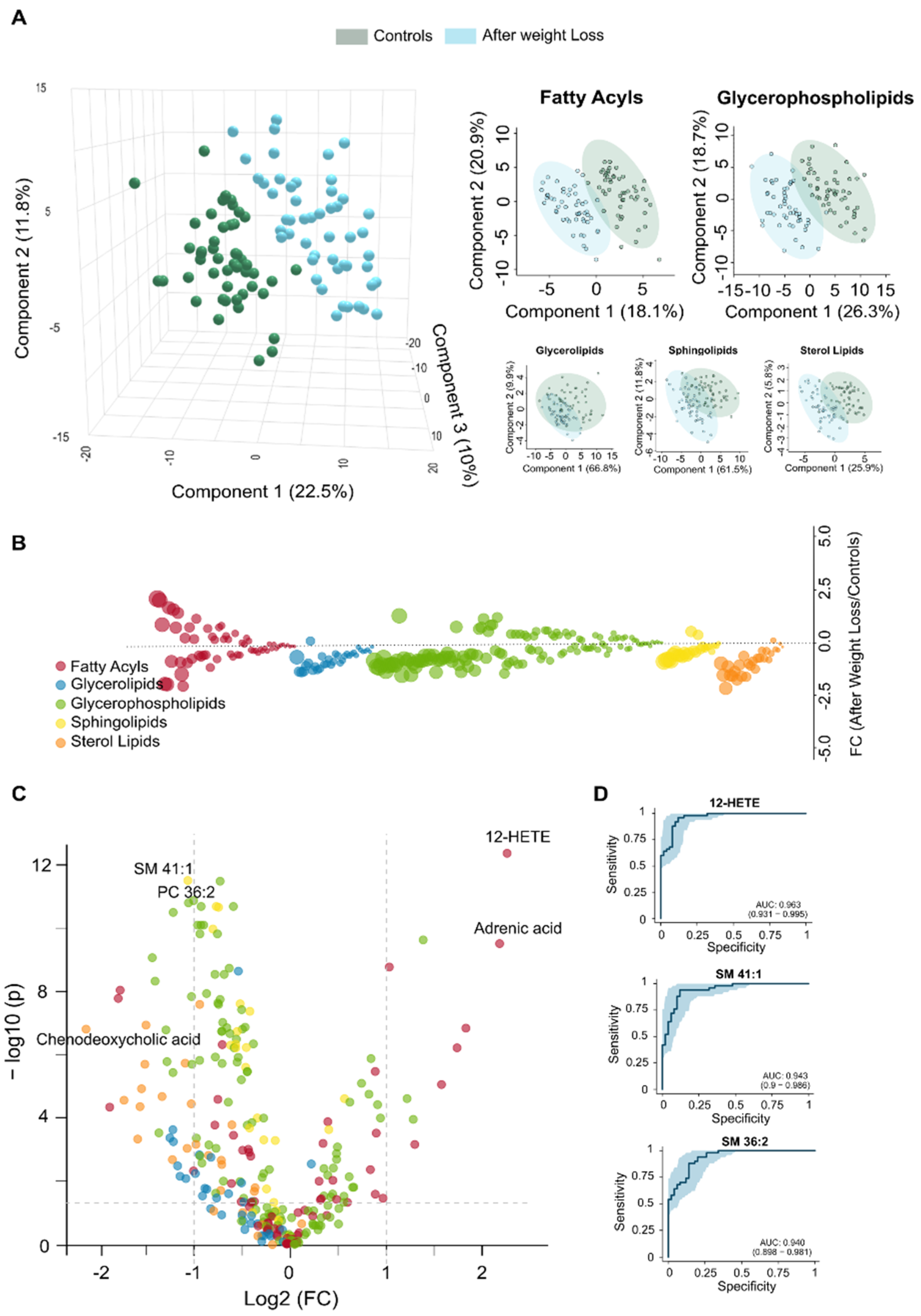 - Onoiu, A.-I.; Cambra-Cortés, V.; Jiménez-Franco, A.; Hernández-Aguilera, A.; Parada, D.; Riu, F.; Zorzano, A.; Camps, J.; Joven, J. Circulating Lipid Profiles Indicate Incomplete Metabolic Recovery After Weight Loss, Suggesting the Need for Additional Interventions in Severe Obesity. Biomolecules 2025, 15, 1112. [Google Scholar] [CrossRef] [PubMed]