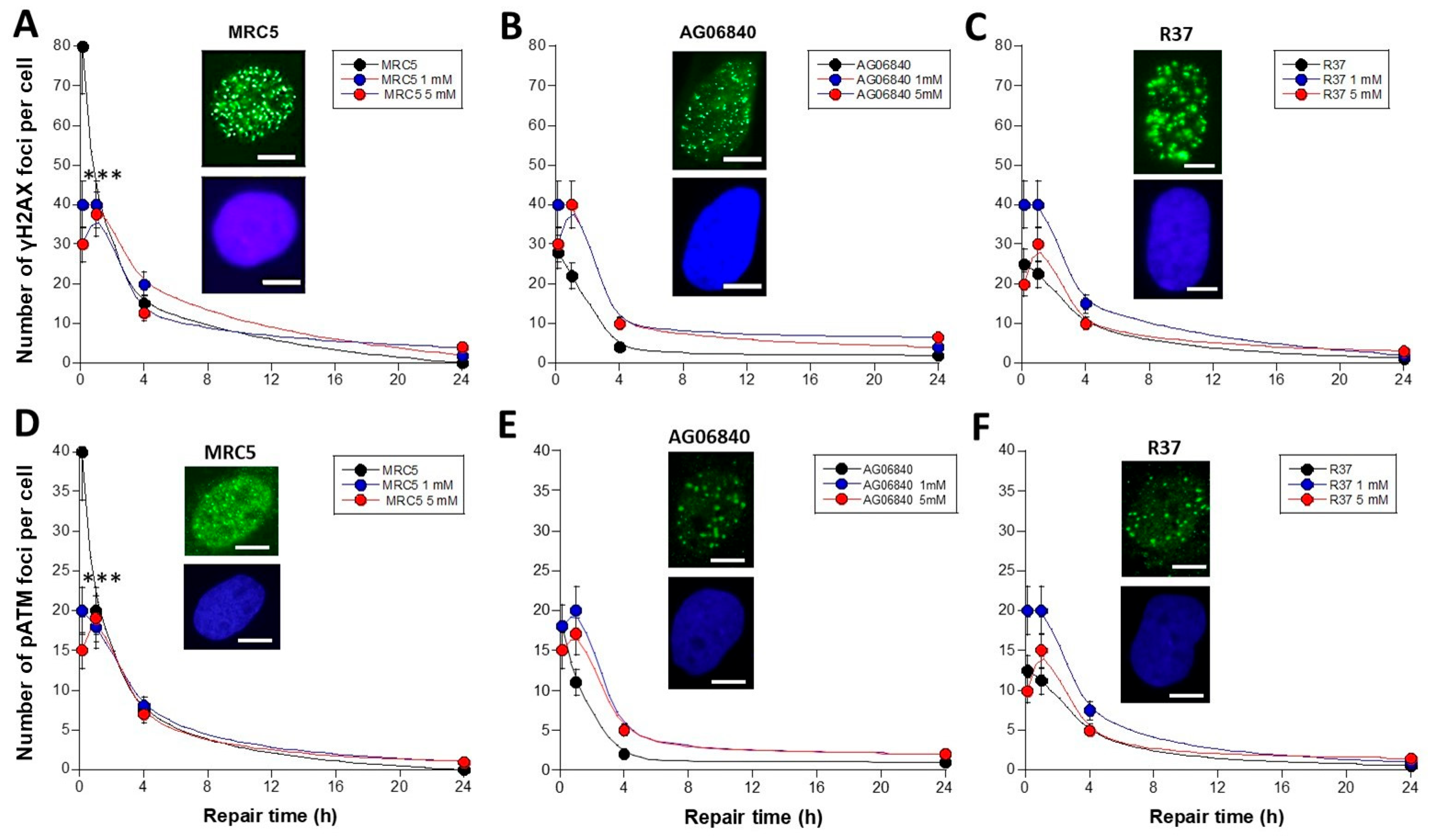 - Granzotto, A.; El Nachef, L.; Restier-Verlet, J.; Sonzogni, L.; Al-Choboq, J.; Bourguignon, M.; Foray, N. When Chromatin Decondensation Affects Nuclear gammaH2AX Foci Pattern and Kinetics and Biases the Assessment of DNA Double-Strand Breaks by Immunofluorescence. Biomolecules 2024, 14, 703. [Google Scholar] [CrossRef]