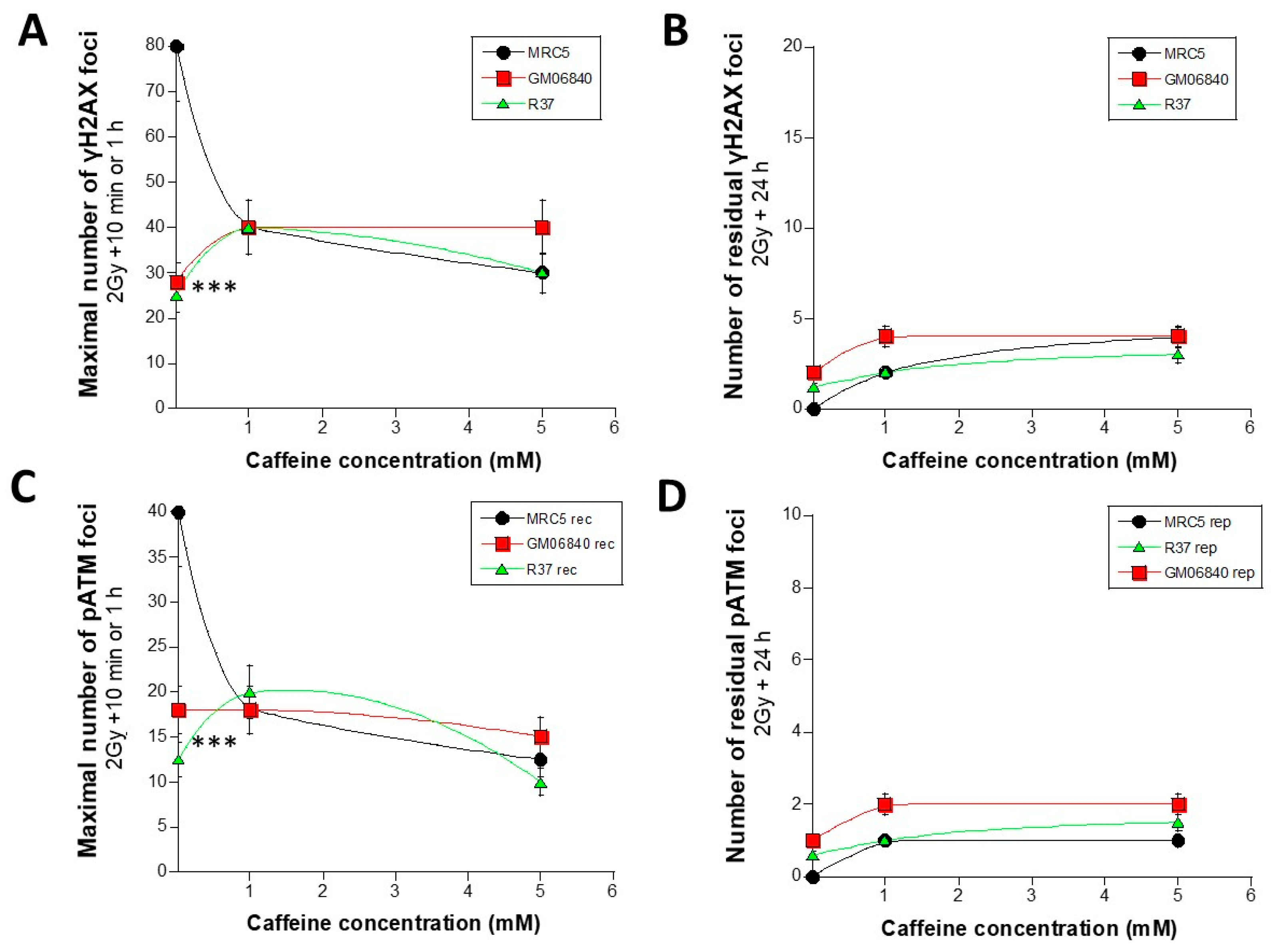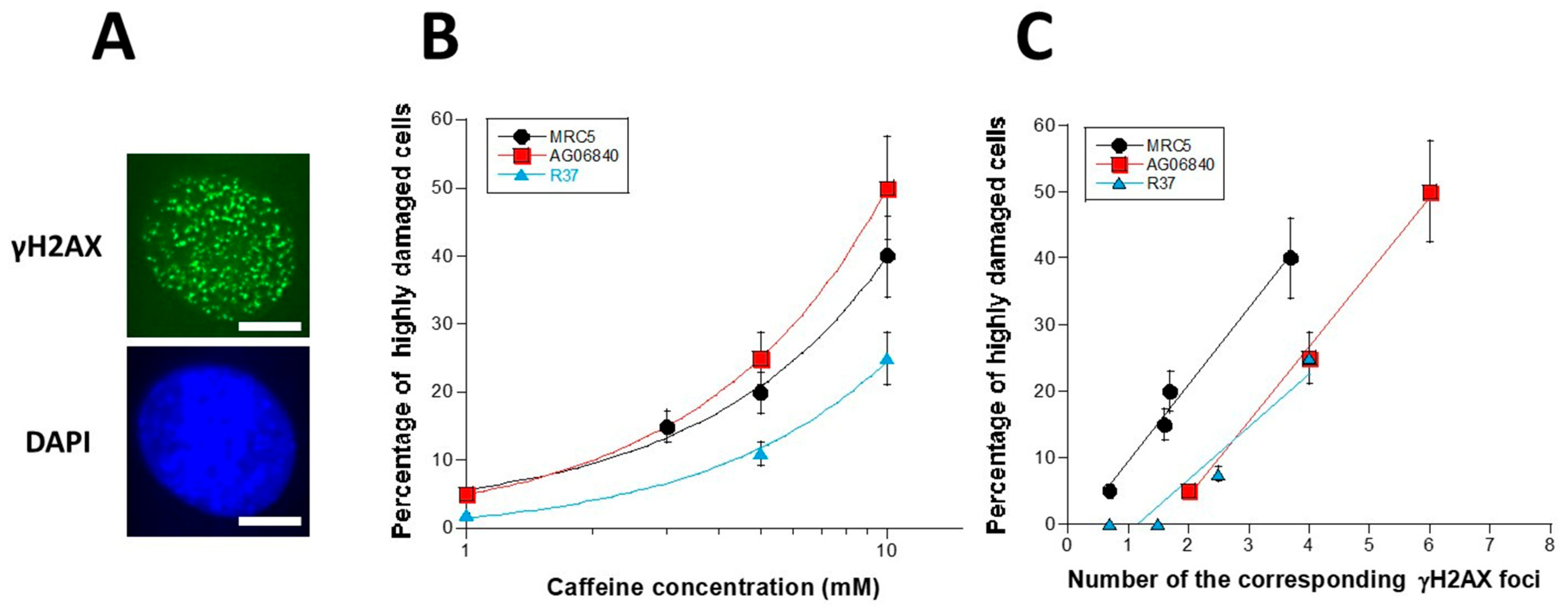 3.2. Does Caffeine Impact on DSB Recognition and Repair?