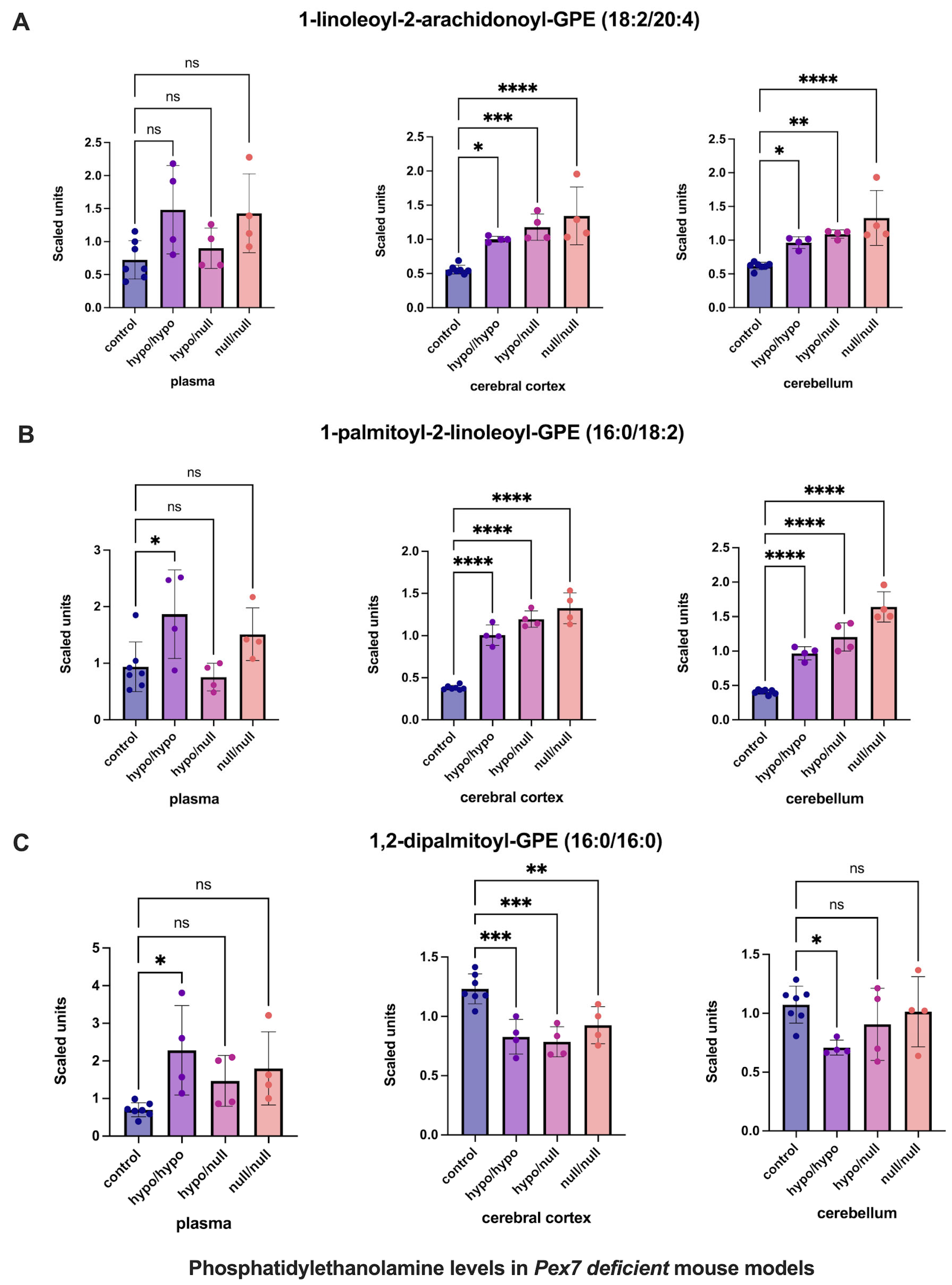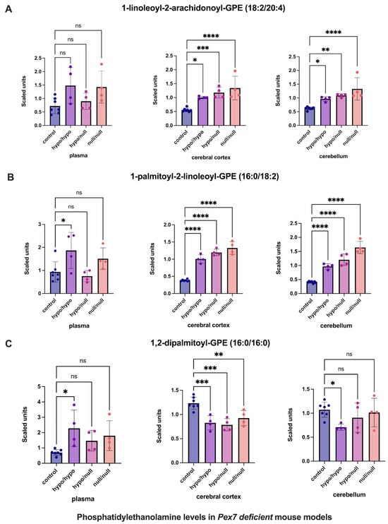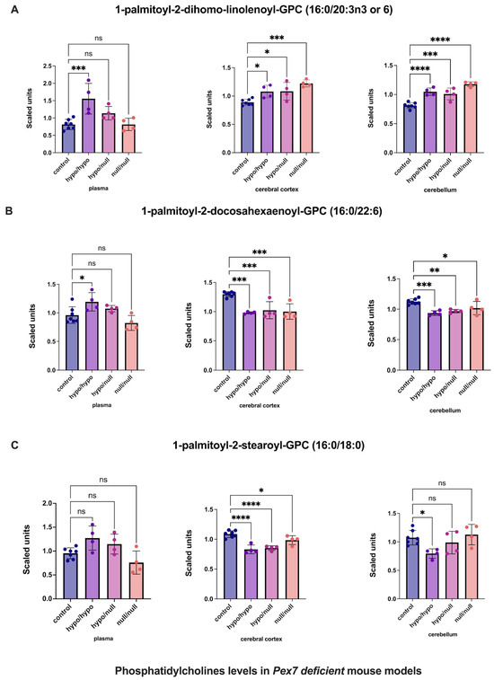 3.6. Pex7-Deficient Mouse Models Exhibit Brain-Specific Lipid Abnormalities Undetected in Plasma