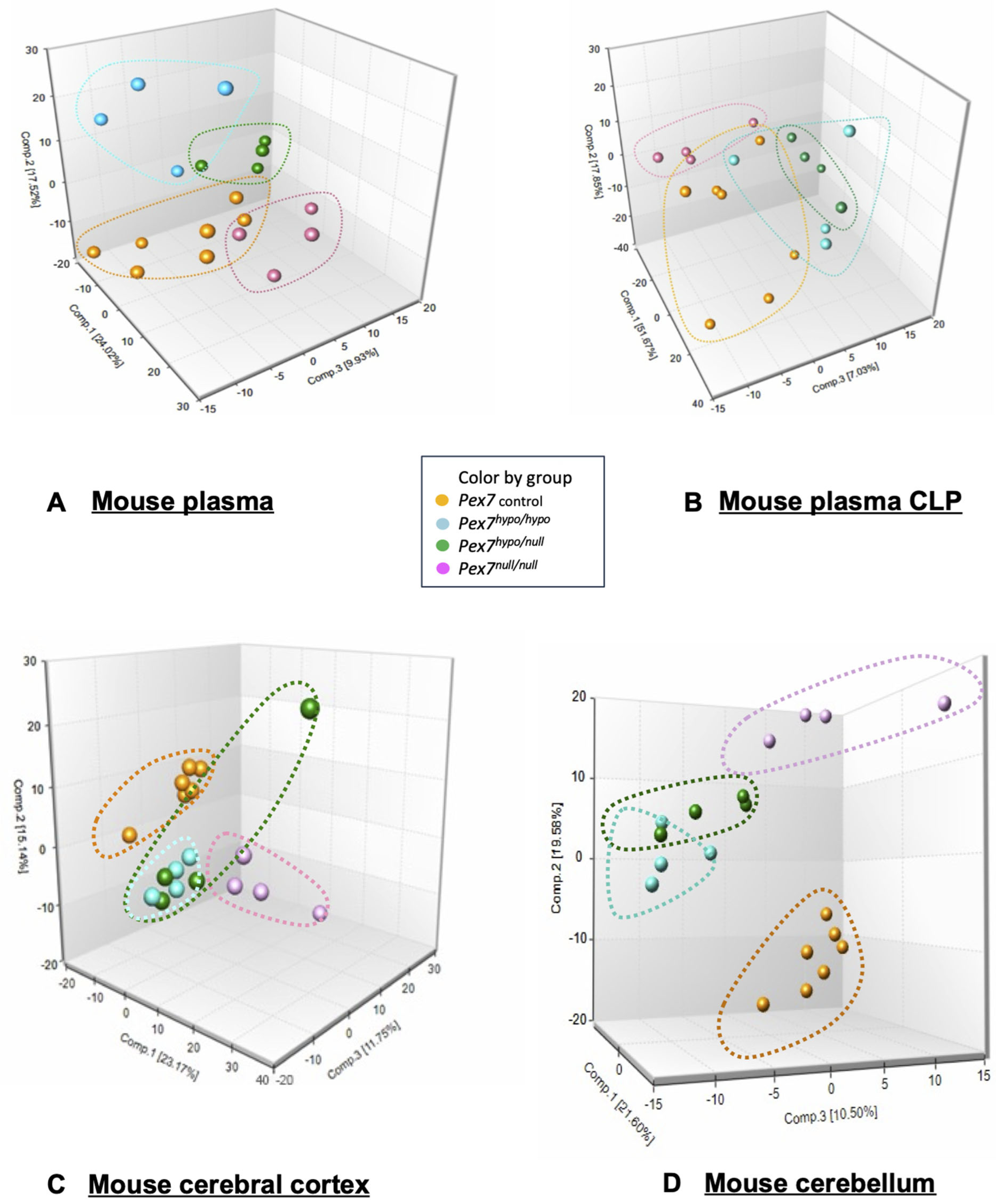3.4. Global Metabolomic Profiling in Plasma and Brain Tissues from Pex7-Deficient Mouse Models
