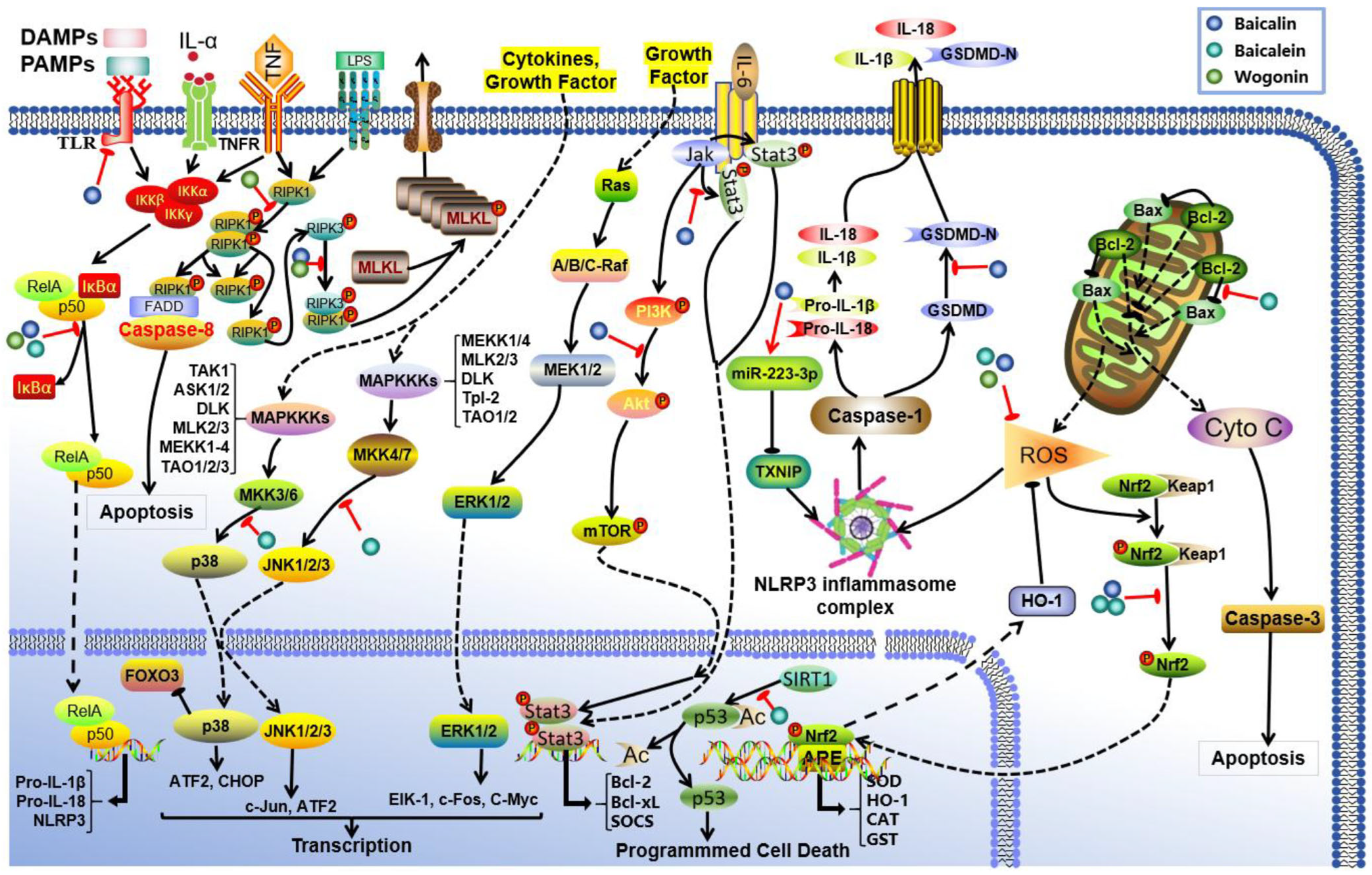 - Wang, W.; Zhou, P.H.; Xu, C.G.; Zhou, X.J.; Hu, W.; Zhang, J. Baicalein attenuates renal fibrosis by inhibiting inflammation via down-regulating NF-κB and MAPK signal pathways. J. Mol. Histol. 2015, 46, 283–290. [Google Scholar] [CrossRef] [PubMed]
