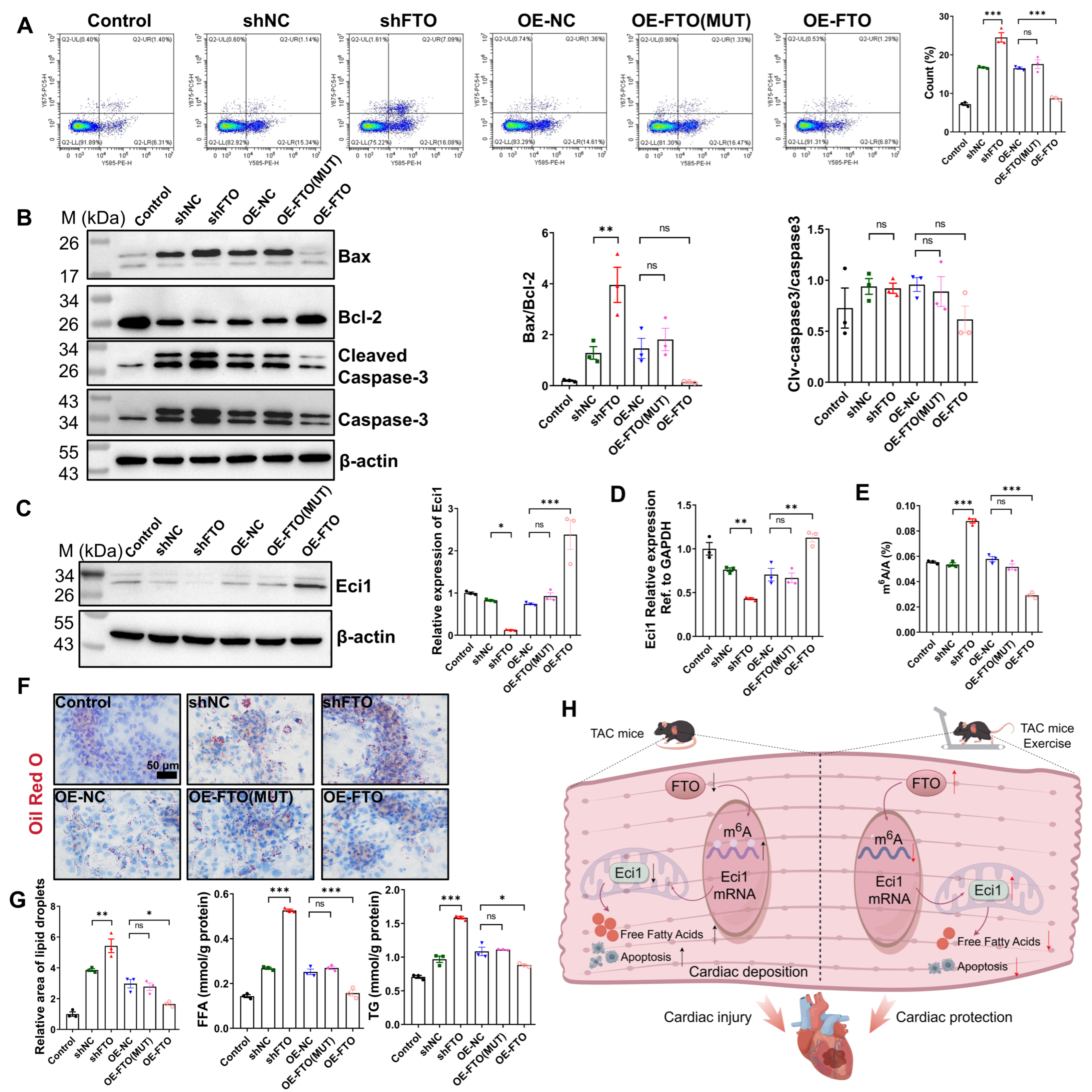 Wang, J.; Chang, Z.; Lin, S.; Sha, G.; Zeng, W.; Huang, Q.; Deng, Q.; Wang, S.; Hu, M.; Xia, J. FTO-Eci1 Axis Mediates Exercise-Induced Cardioprotection in Pressure Overload Mice. Biomolecules 2026, 16, 98. https://doi.org/10.3390/biom16010098