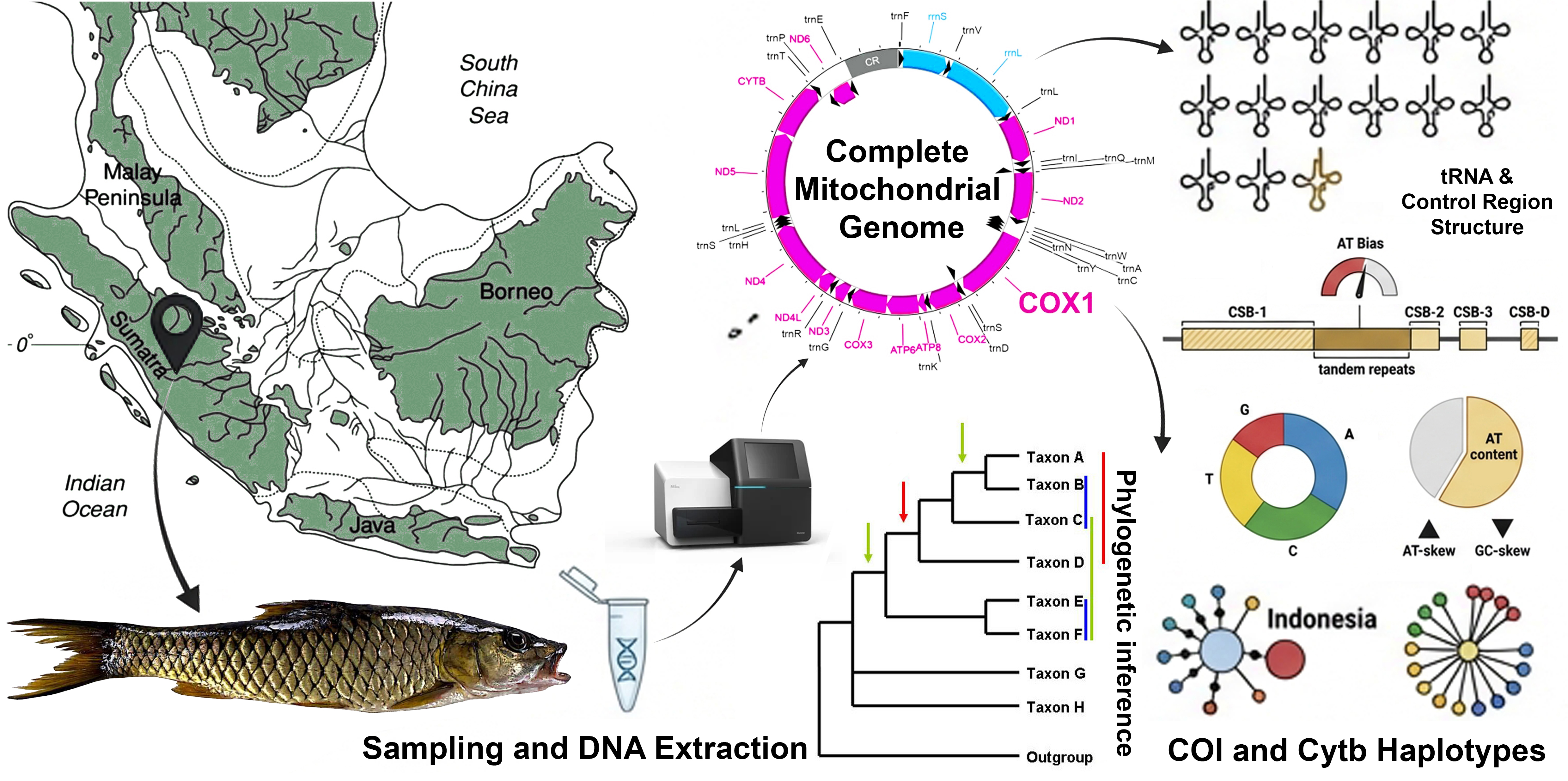 Mitogenomic Insights into the Hampala Barb (Hampala macrolepidota) from Sumatra, Indonesia: Characterization, Phylogenetic Placement, and Genetic Diversity