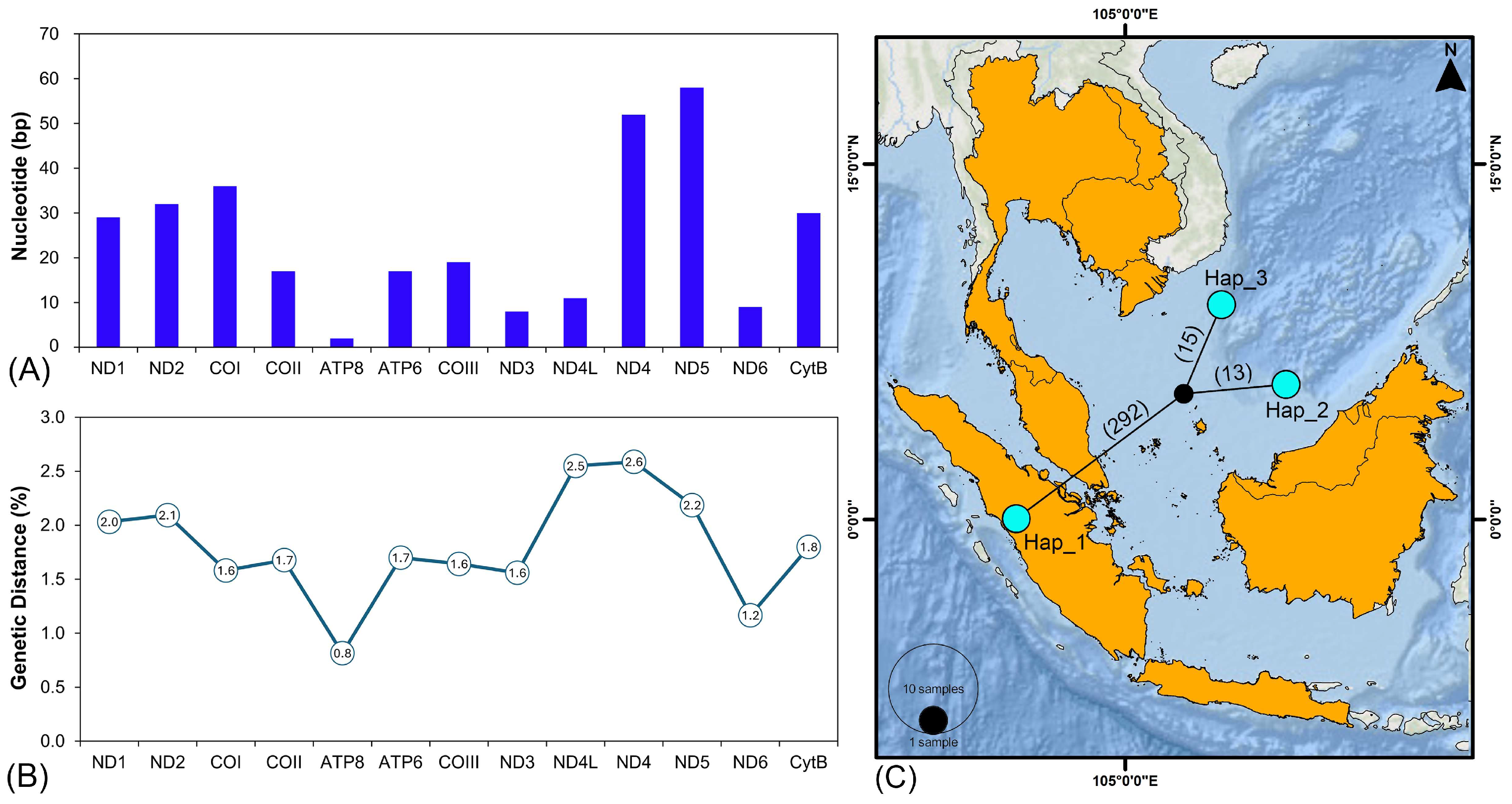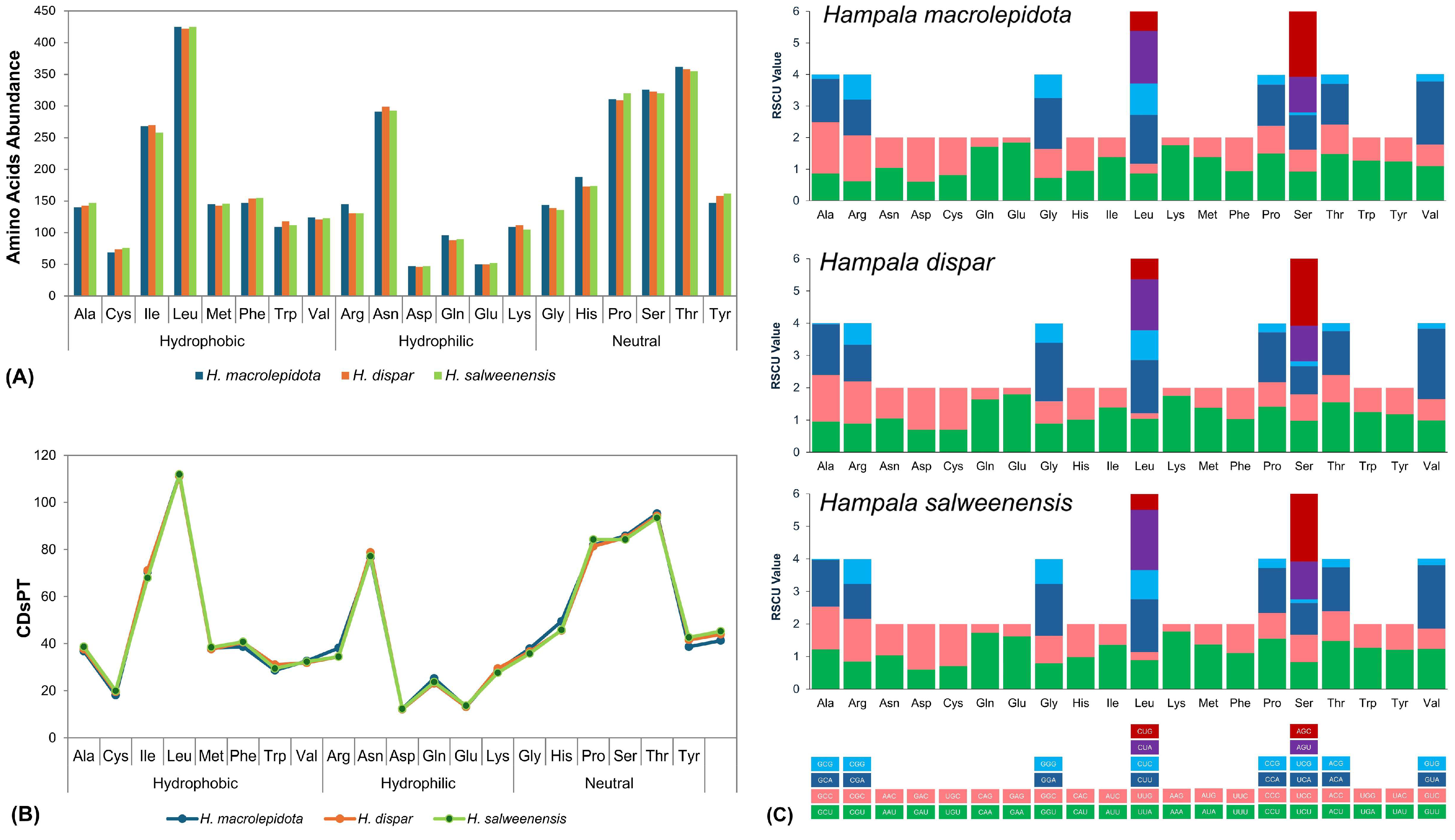 | H. macrolepidota (KF670818) | 1556 | 29.88 | 26.41 | 22.62 | 21.08 | 56.30 | 43.70 | 0.062 | 0.035 |