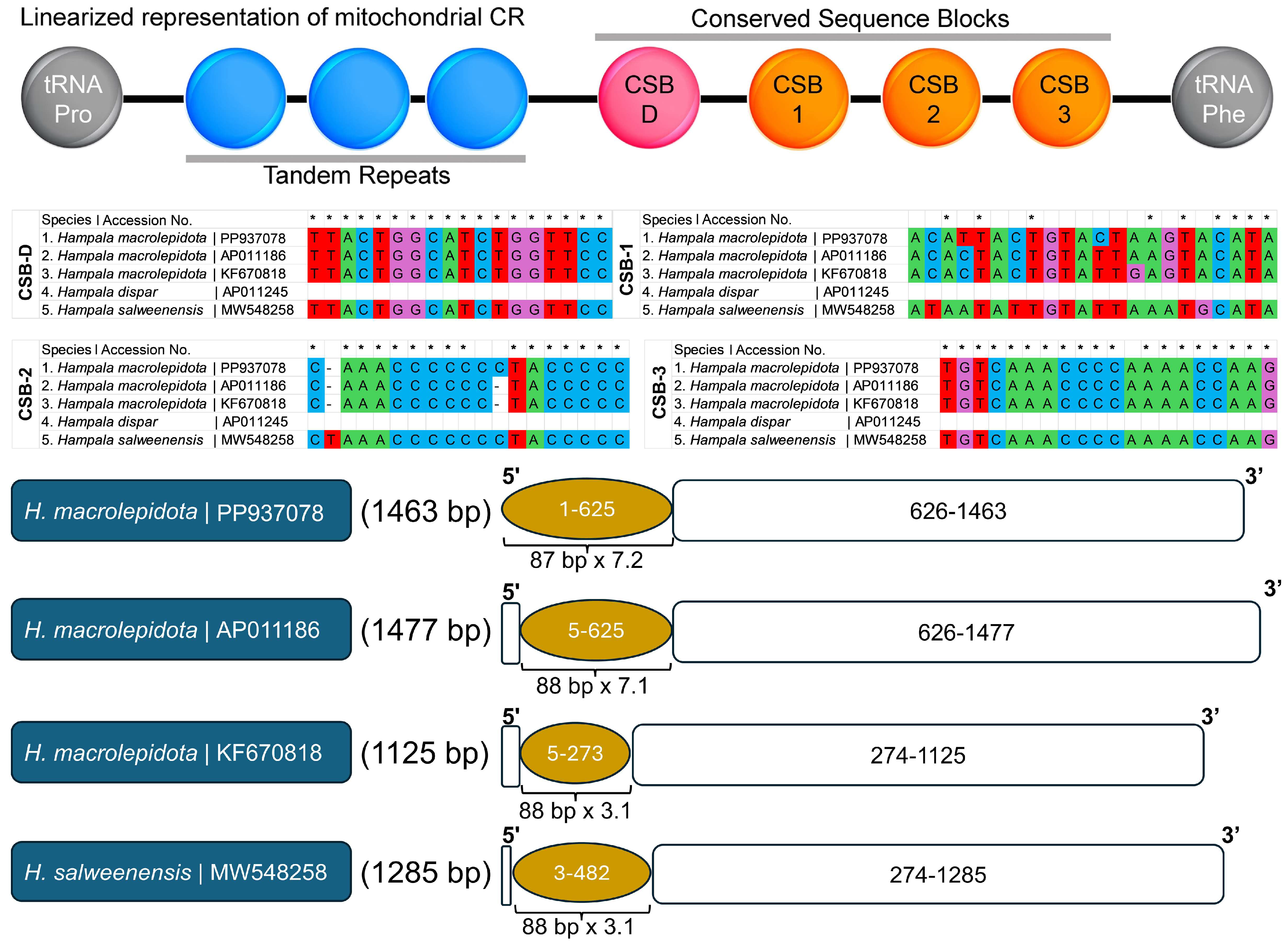 - Xing, B.; Lin, L.; Wu, Q. Application of mitochondrial genomes to species identification and evolution. Electron. J. Biotechnol. 2025, 76, 39–48. [Google Scholar] [CrossRef]