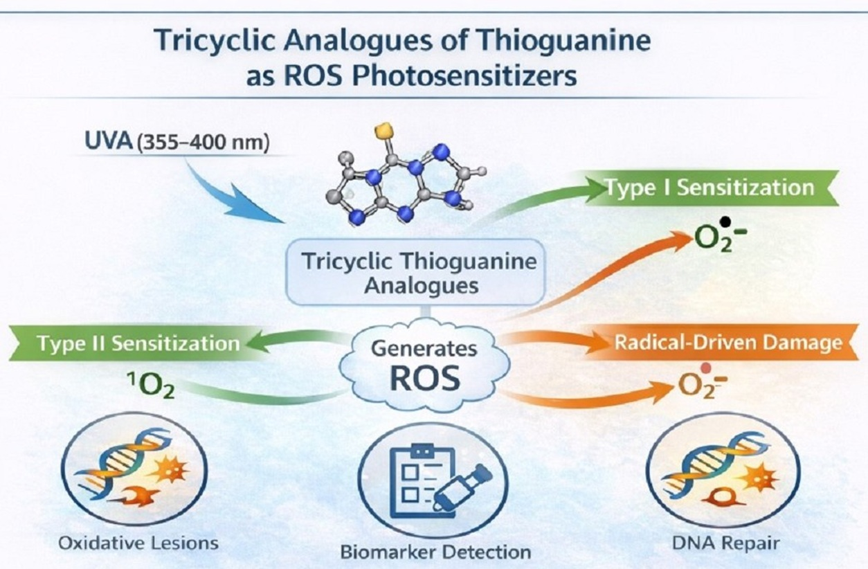 APA StyleTaras-Goslinska, K., Krancewicz, K., & Marciniak, B. (2026). Tricyclic Analogs of Thioguanine as Photosensitizers of Reactive Oxygen Species-Induced DNA and RNA Damage. Biomolecules, 16(2), 275. https://doi.org/10.3390/biom16020275