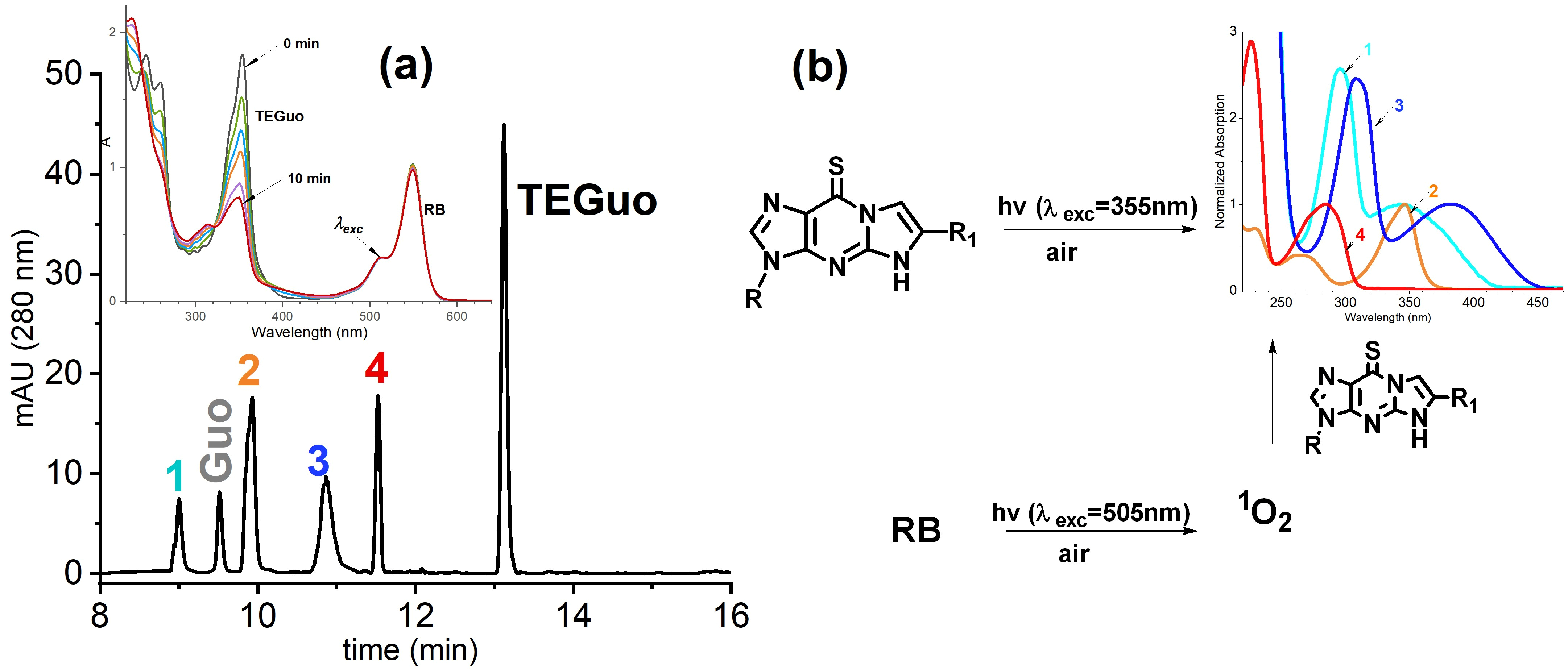 3.1. Photochemical Stability of Thiopurine Etheno Adducts Under Anaerobic Conditions