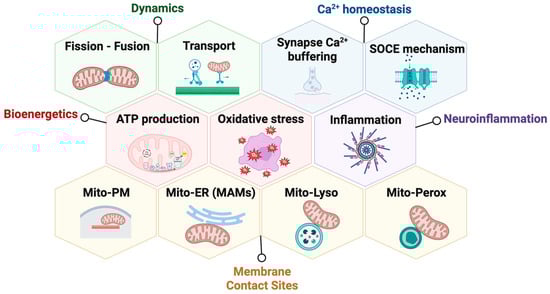 - Misgeld, T.; Schwarz, T.L. Mitostasis in Neurons: Maintaining Mitochondria in an Extended Cellular Architecture. Neuron 2017, 96, 651–666. [Google Scholar] [CrossRef] [PubMed]
