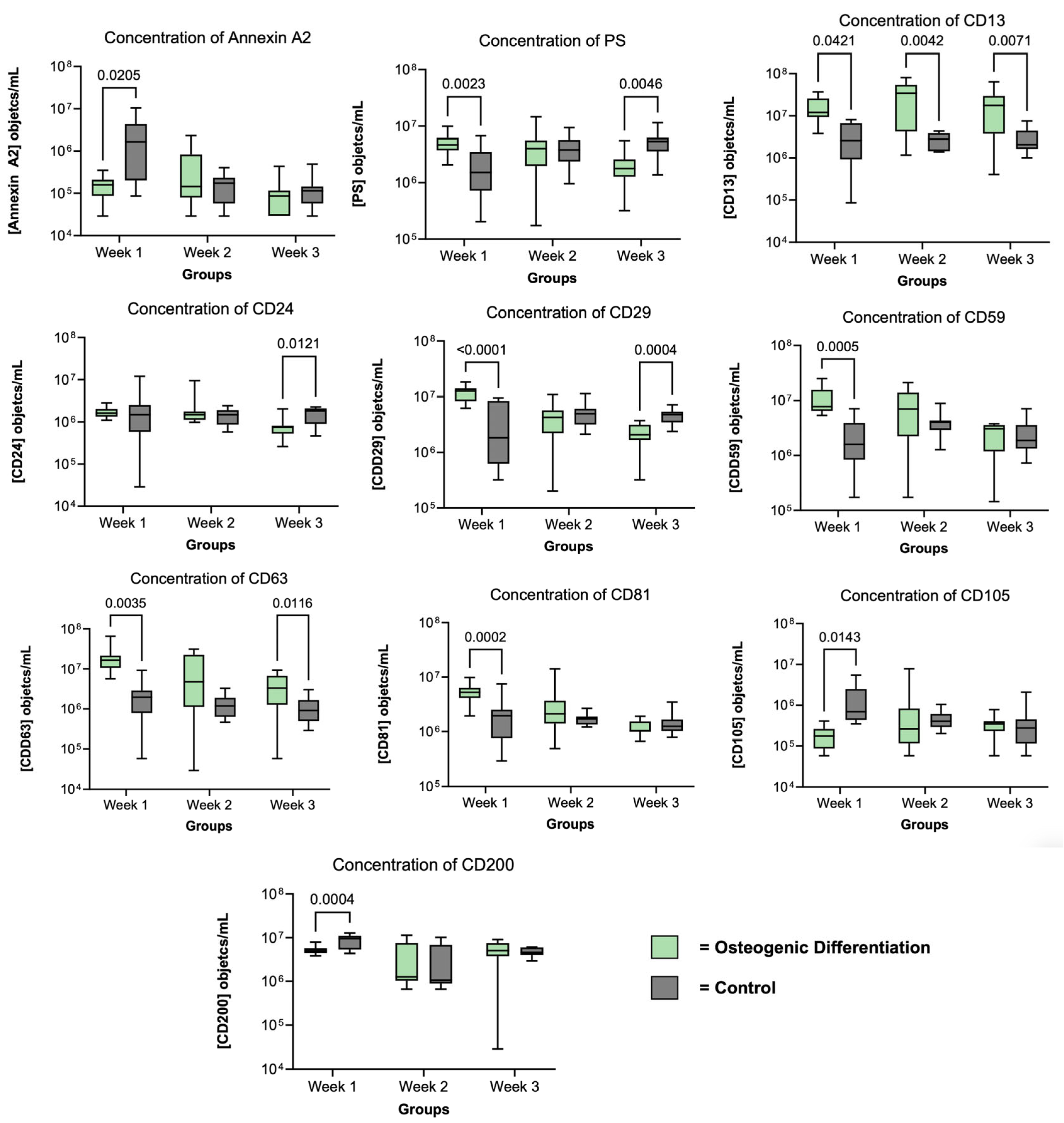 4.2. Osteogenically Induced MSC Release a Different Subpopulation of EVs
