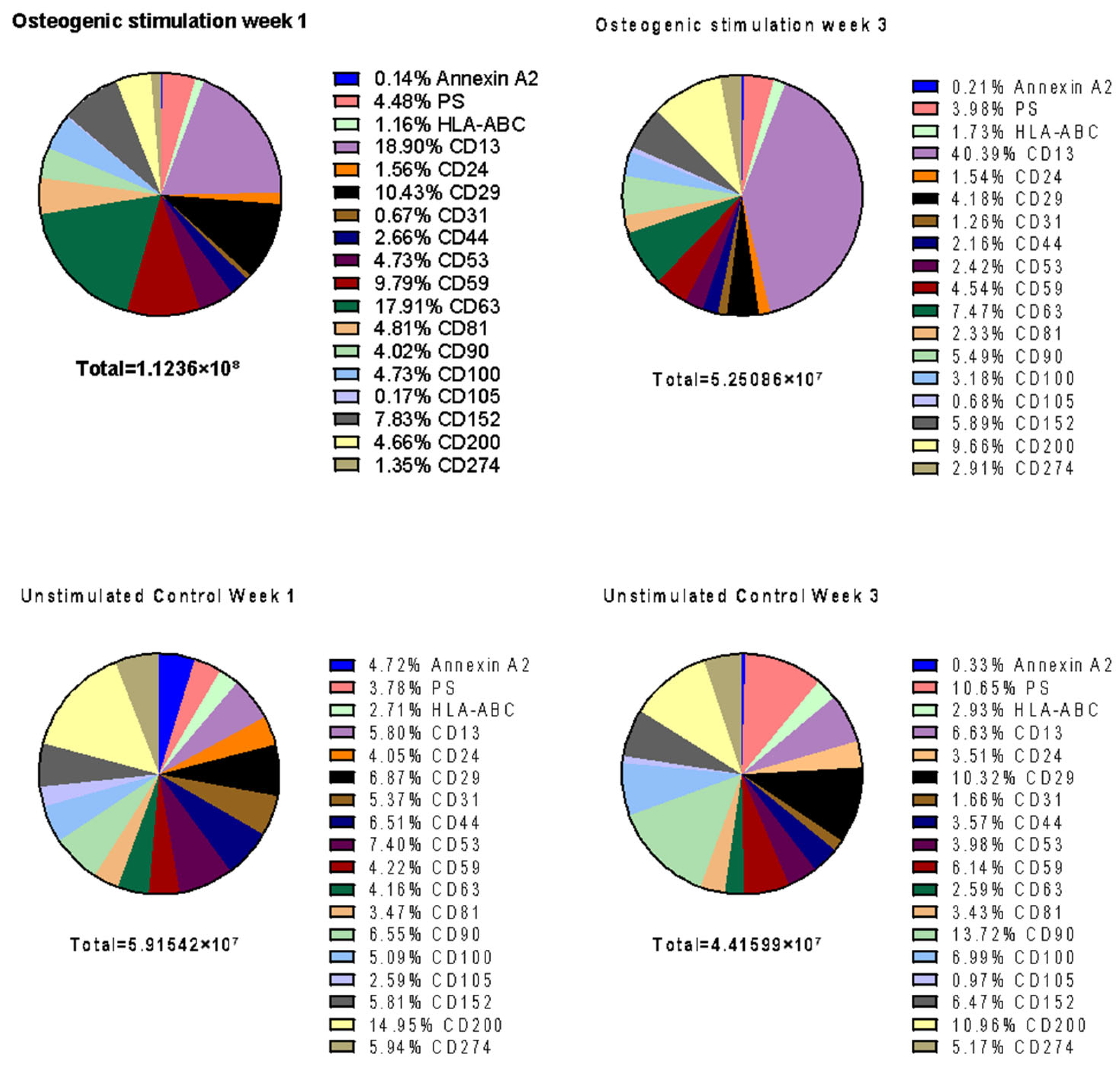 | CD105 | 1.53 × 106 ± 1.55 × 106 | 4.27 × 105 ± 5.48 × 105 | ↓ | 0.0017 |