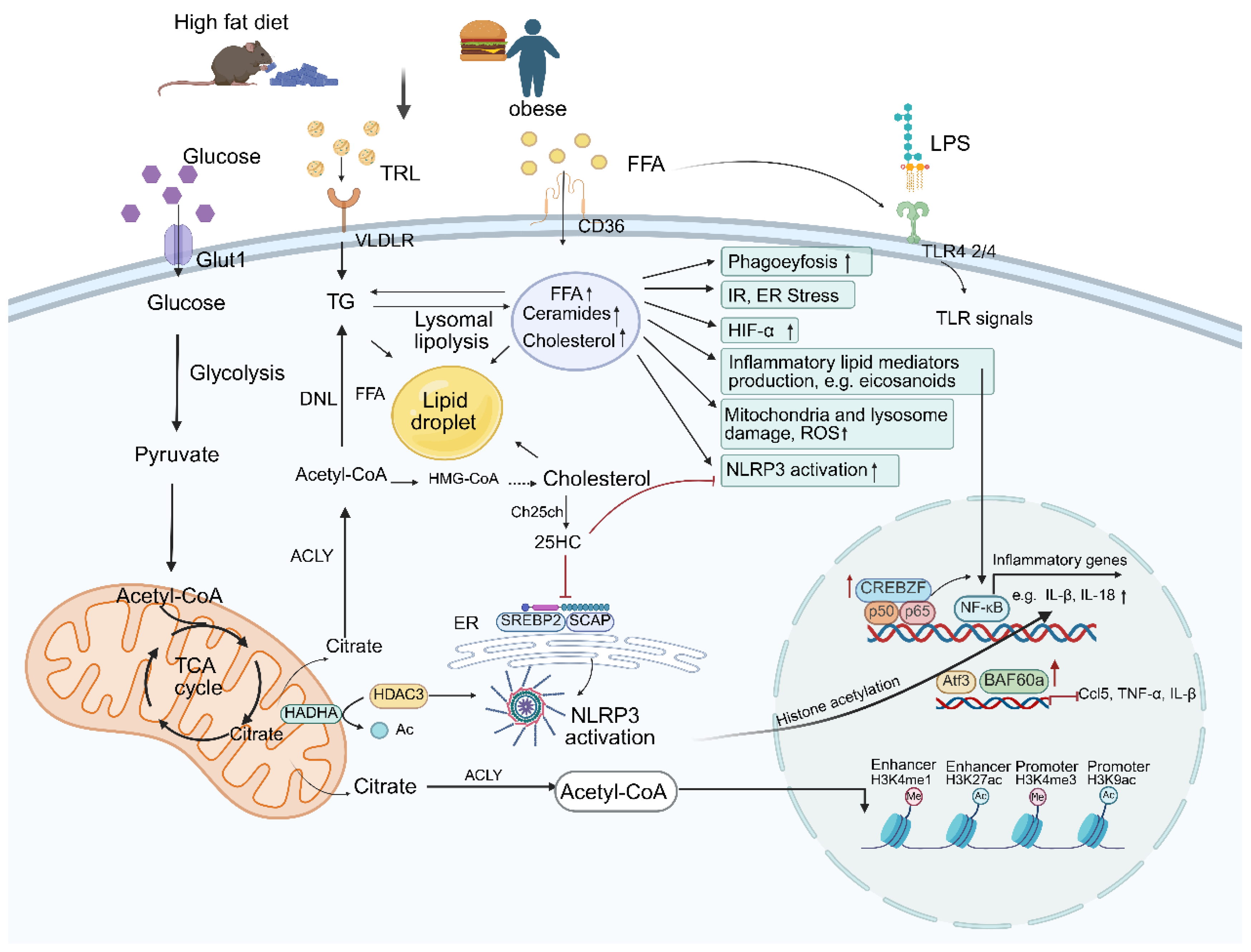 - Liu, Y.; Su, W.; Liu, Z.; Hu, Z.; Shen, J.; Zheng, Z.; Ding, D.; Huang, W.; Li, W.; Cai, G.; et al. Macrophage CREBZF Orchestrates Inflammatory Response to Potentiate Insulin Resistance and Type 2 Diabetes. Adv. Sci. 2024, 11, e2306685. [Google Scholar] [CrossRef]