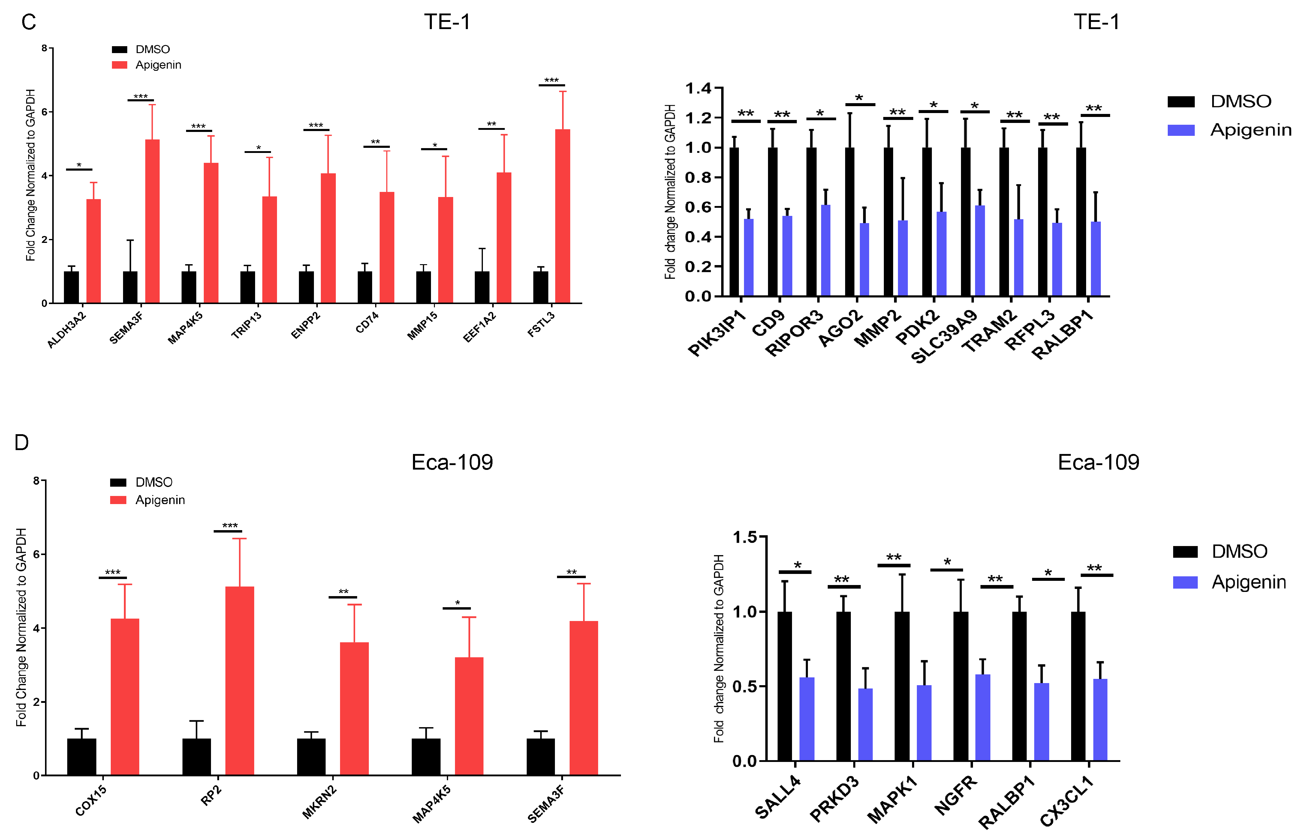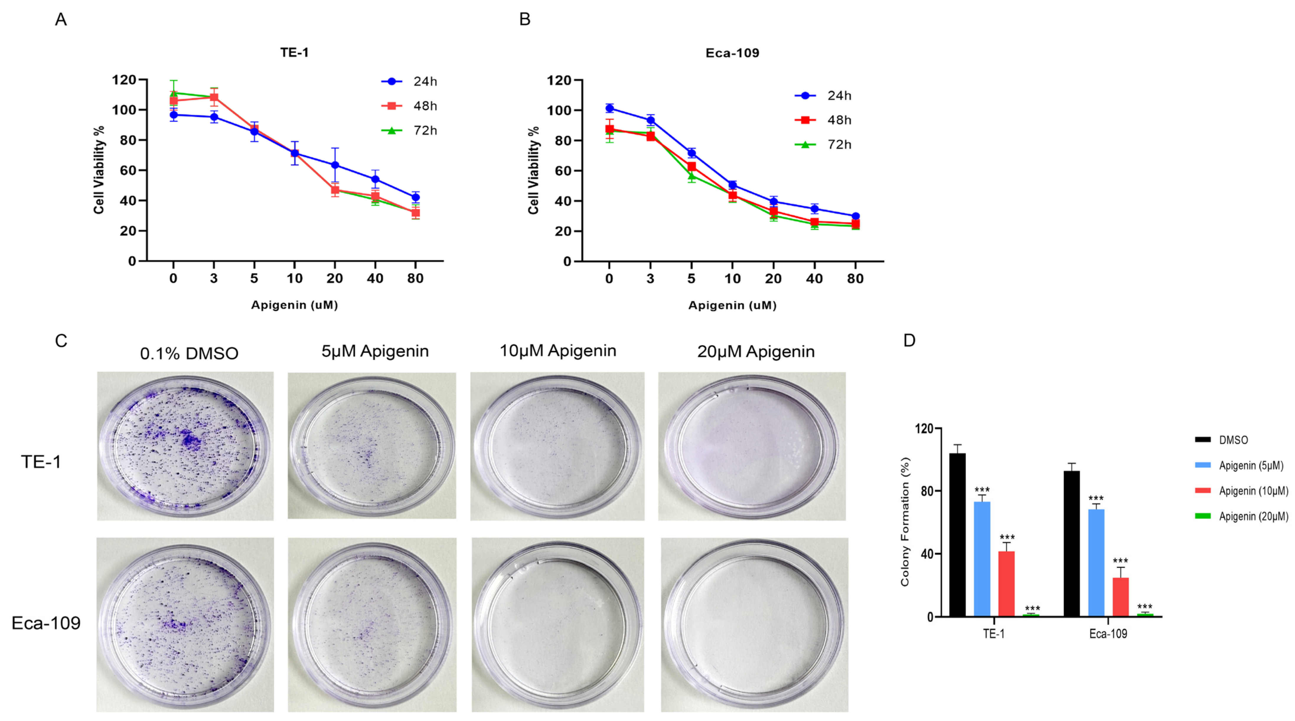 3.1. Apigenin Suppresses the Proliferation of TE-1 and Eca-109 Cells