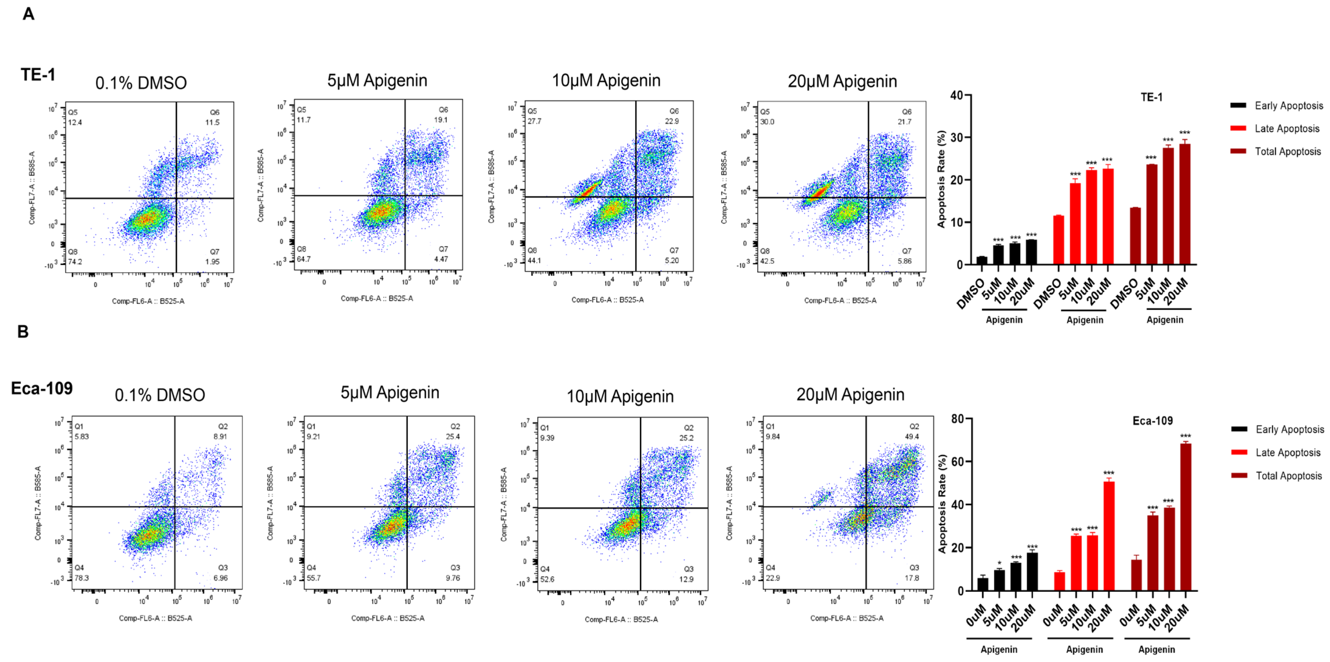 3.3. Apigenin Induces Apoptosis in ESCC Cells