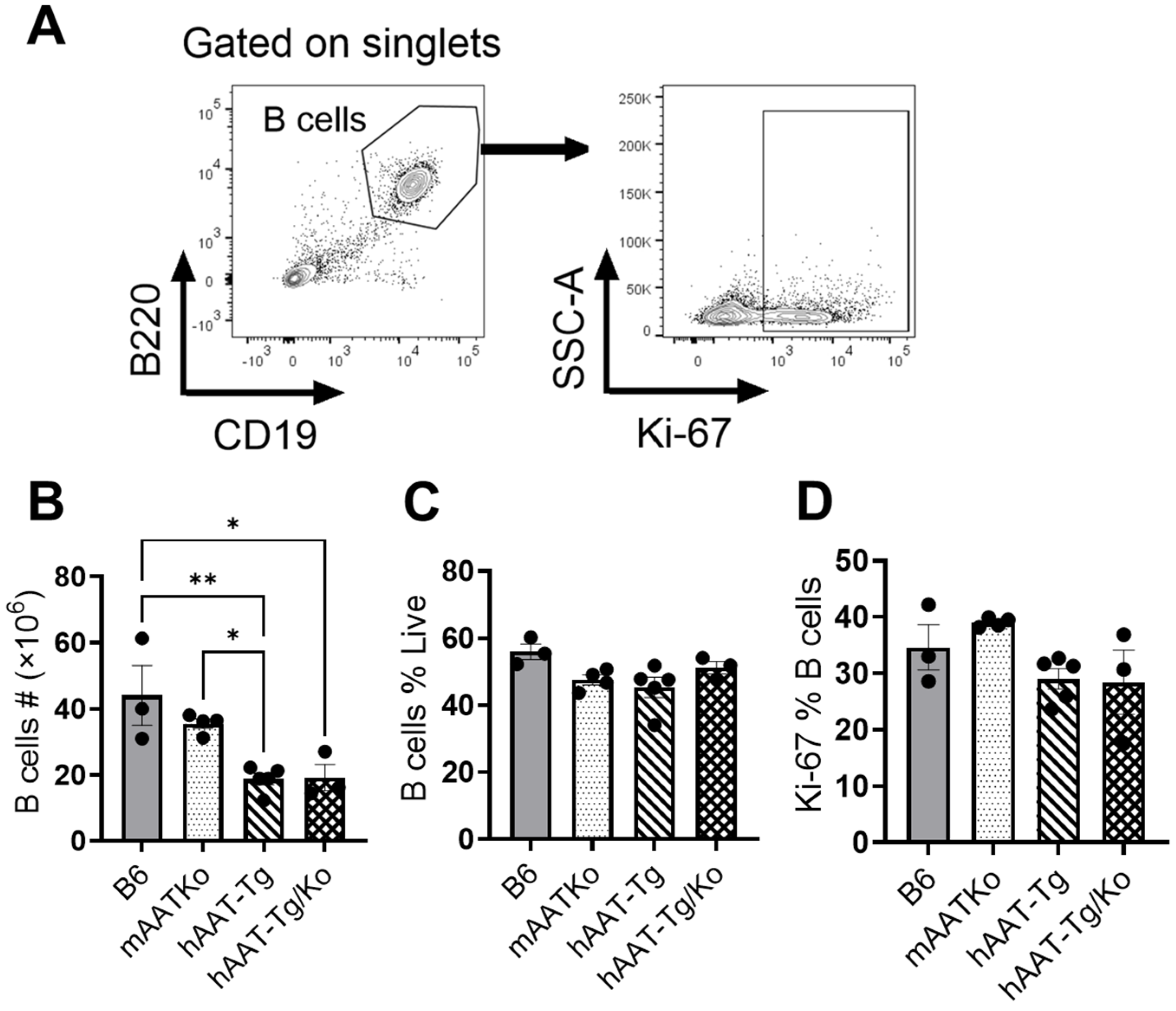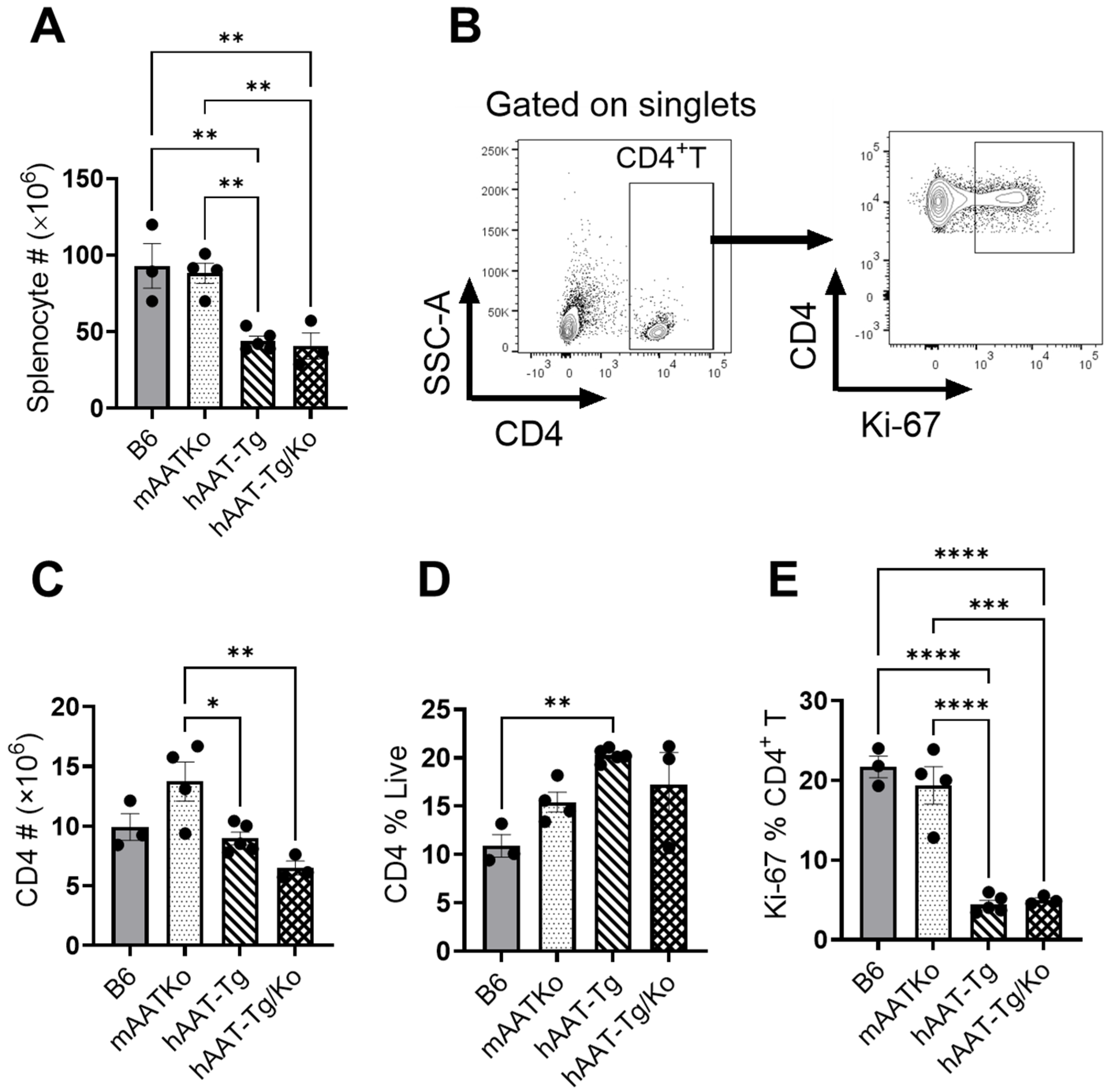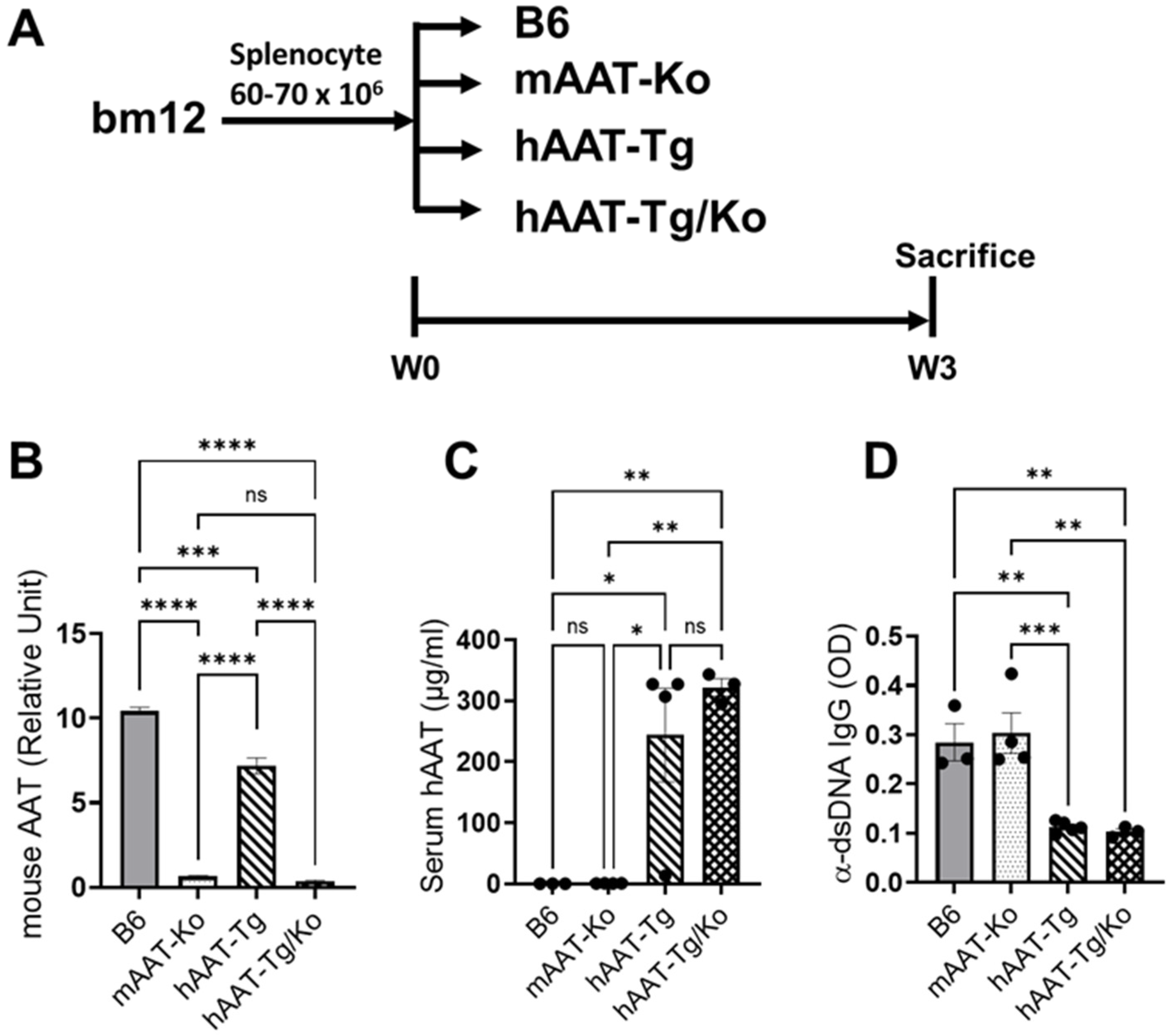 3.1. Transgenic Expression of hAAT Inhibits Autoantibody Production in the cGVHD-Induced Lupus Mouse Model