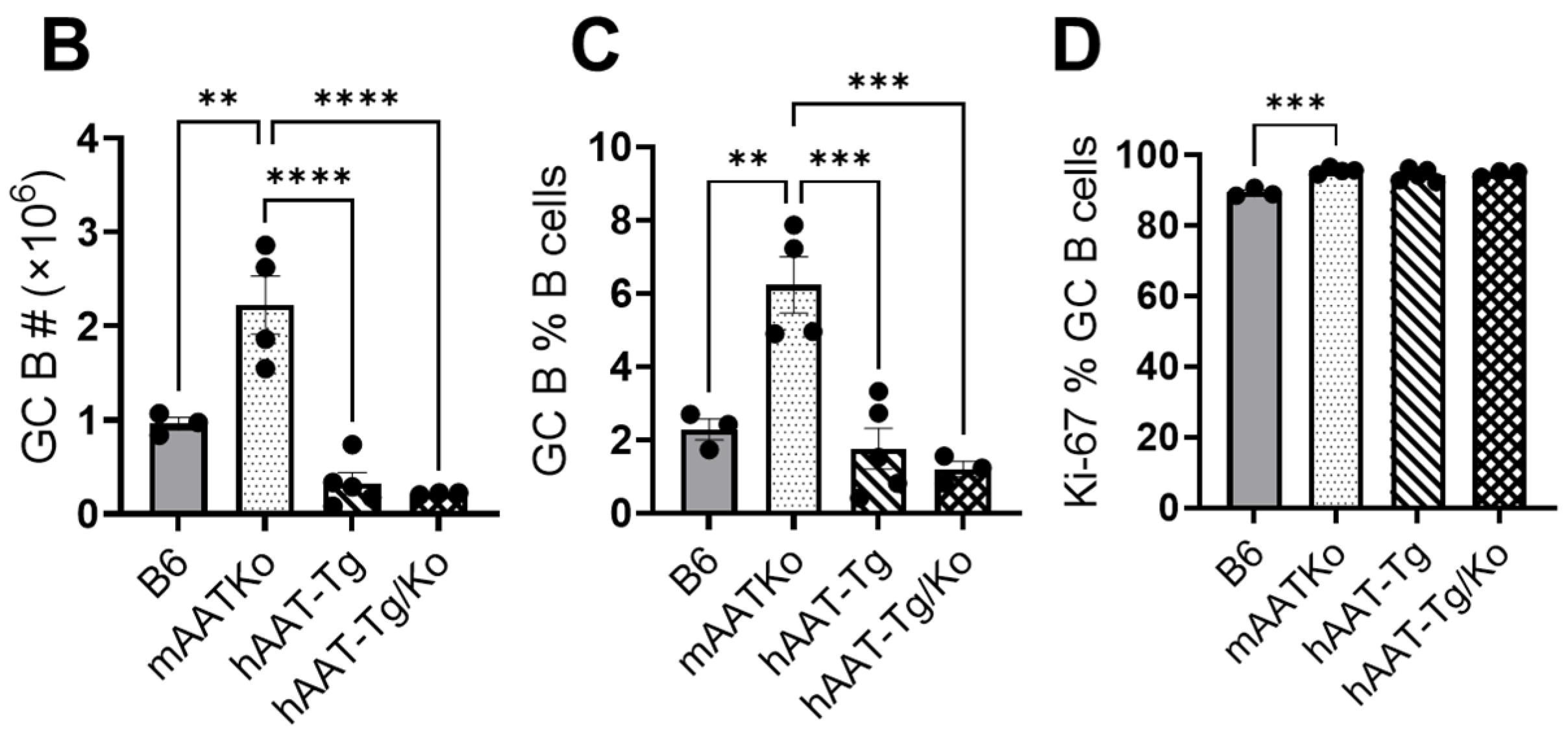 3.6. hAAT Suppresses Germinal Center Formation and Function