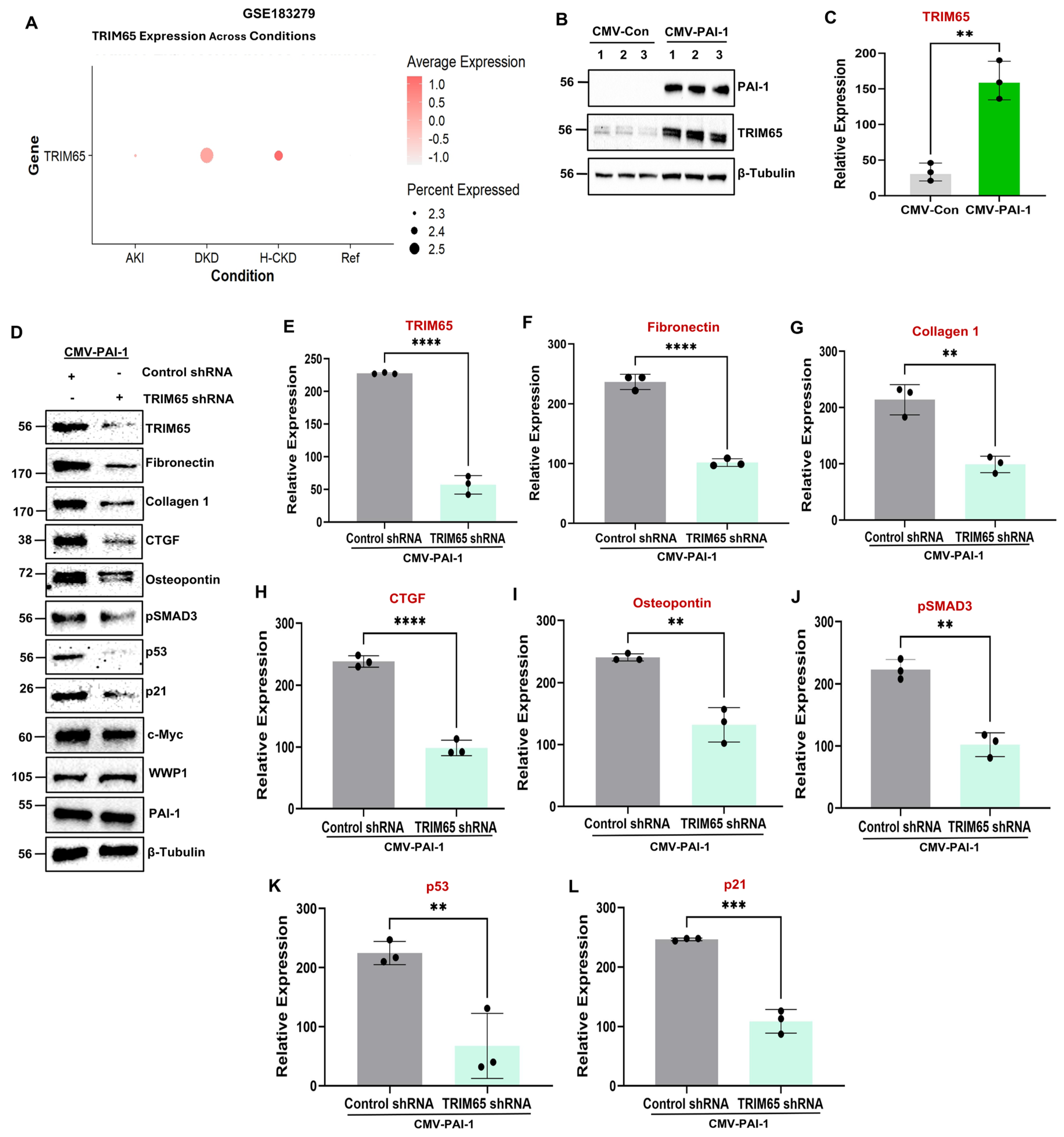 3.3. PAI-1 Promotes WWP1 and TRIM65 Upregulation to Trigger Tubular Dysfunction
