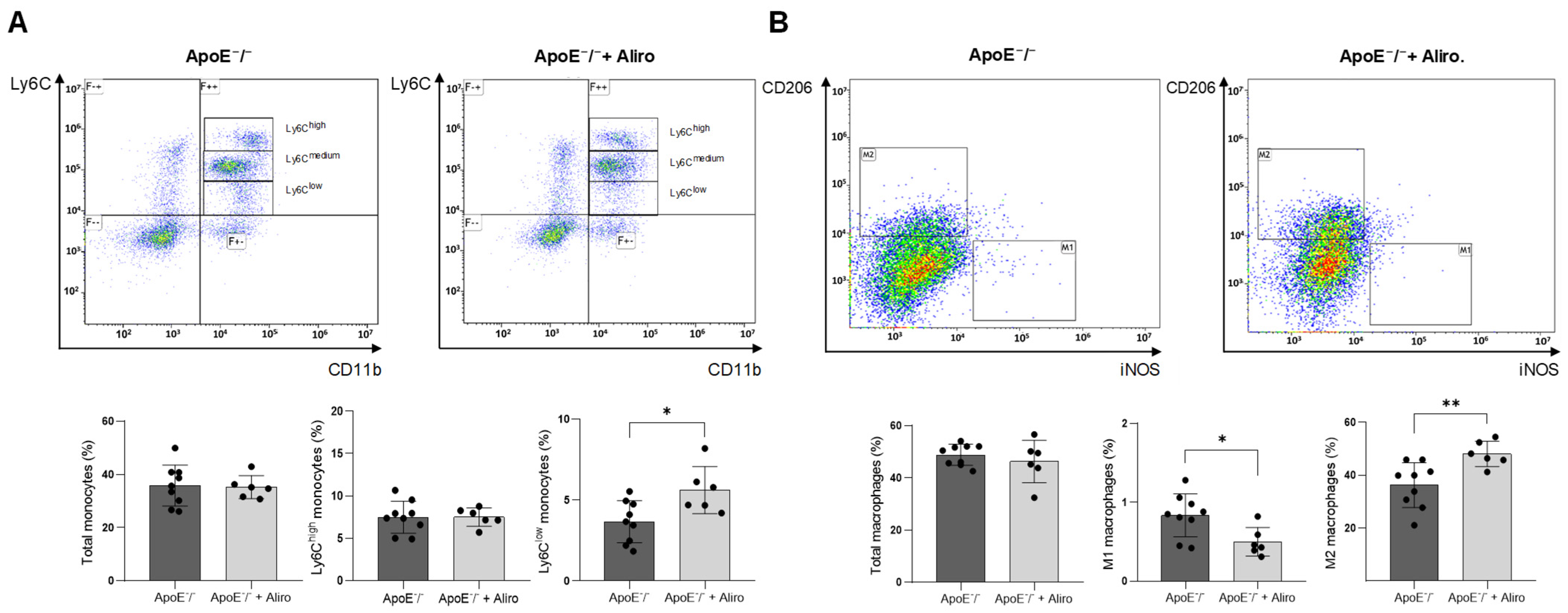 - Yang, P.; Wu, Q.; Sun, L.; Fang, P.; Liu, L.; Ji, Y.; Park, J.Y.; Qin, X.; Yang, X.; Wang, H. Adaptive Immune Response Signaling Is Suppressed in Ly6Chigh Monocyte but Upregulated in Monocyte Subsets of ApoE-/- Mice—Functional Implication in Atherosclerosis. Front. Immunol. 2021, 12, 809208. [Google Scholar] [CrossRef]