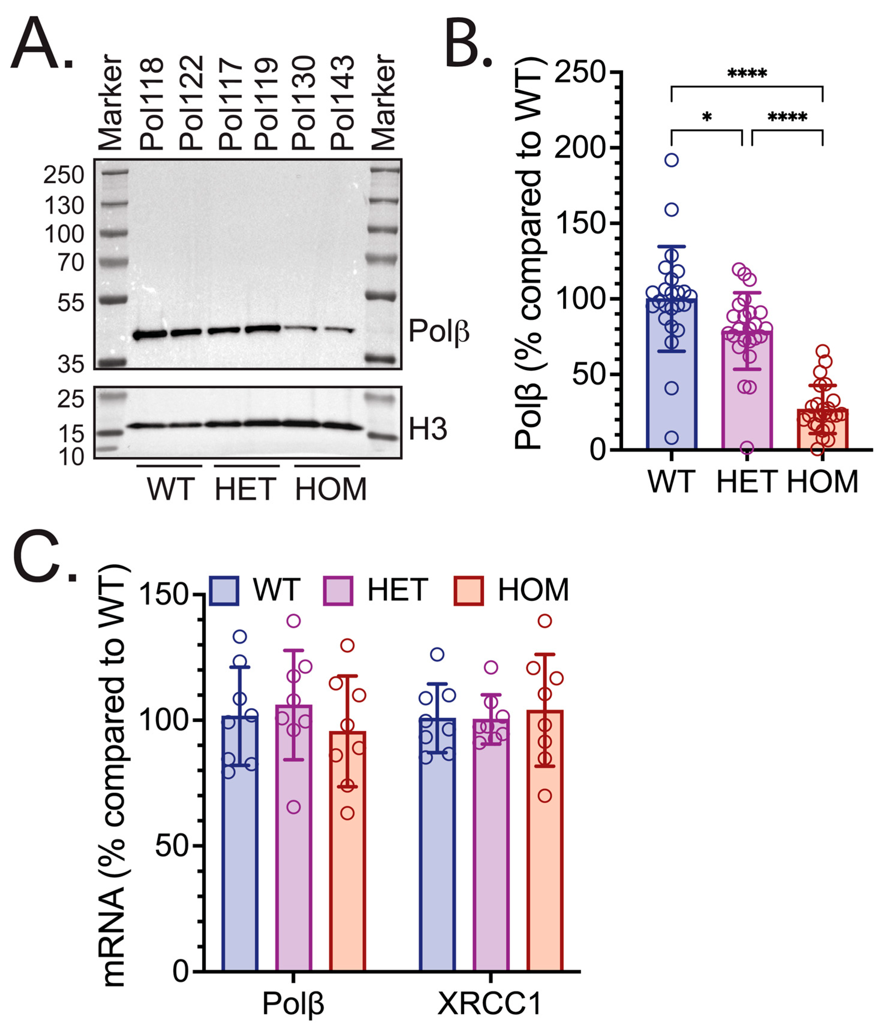 3.3. Polβ Stability in L301R/V303R HOM Mouse Ear Fibroblasts