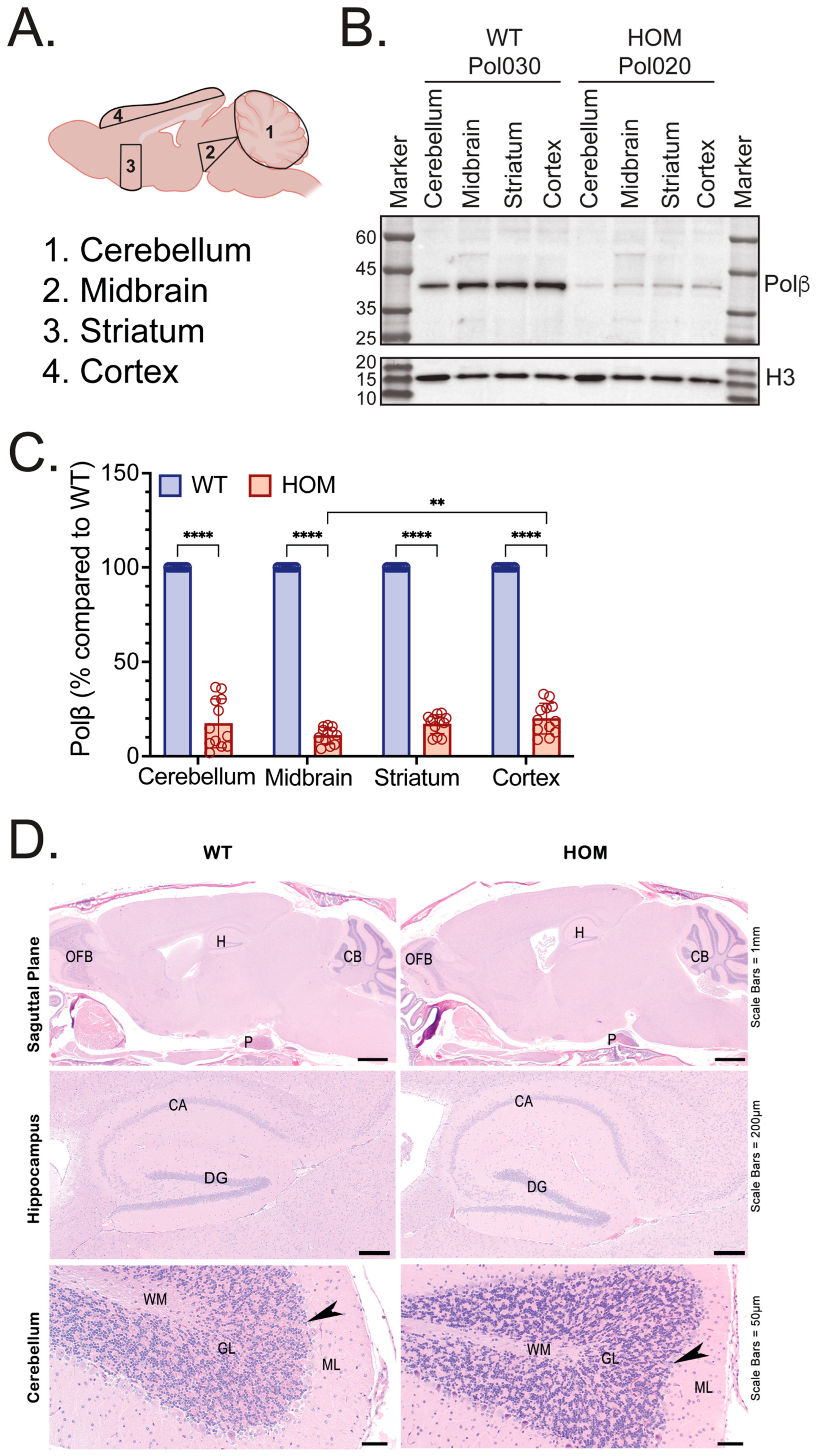 3.2. Polβ Protein Levels Across Brain Sections