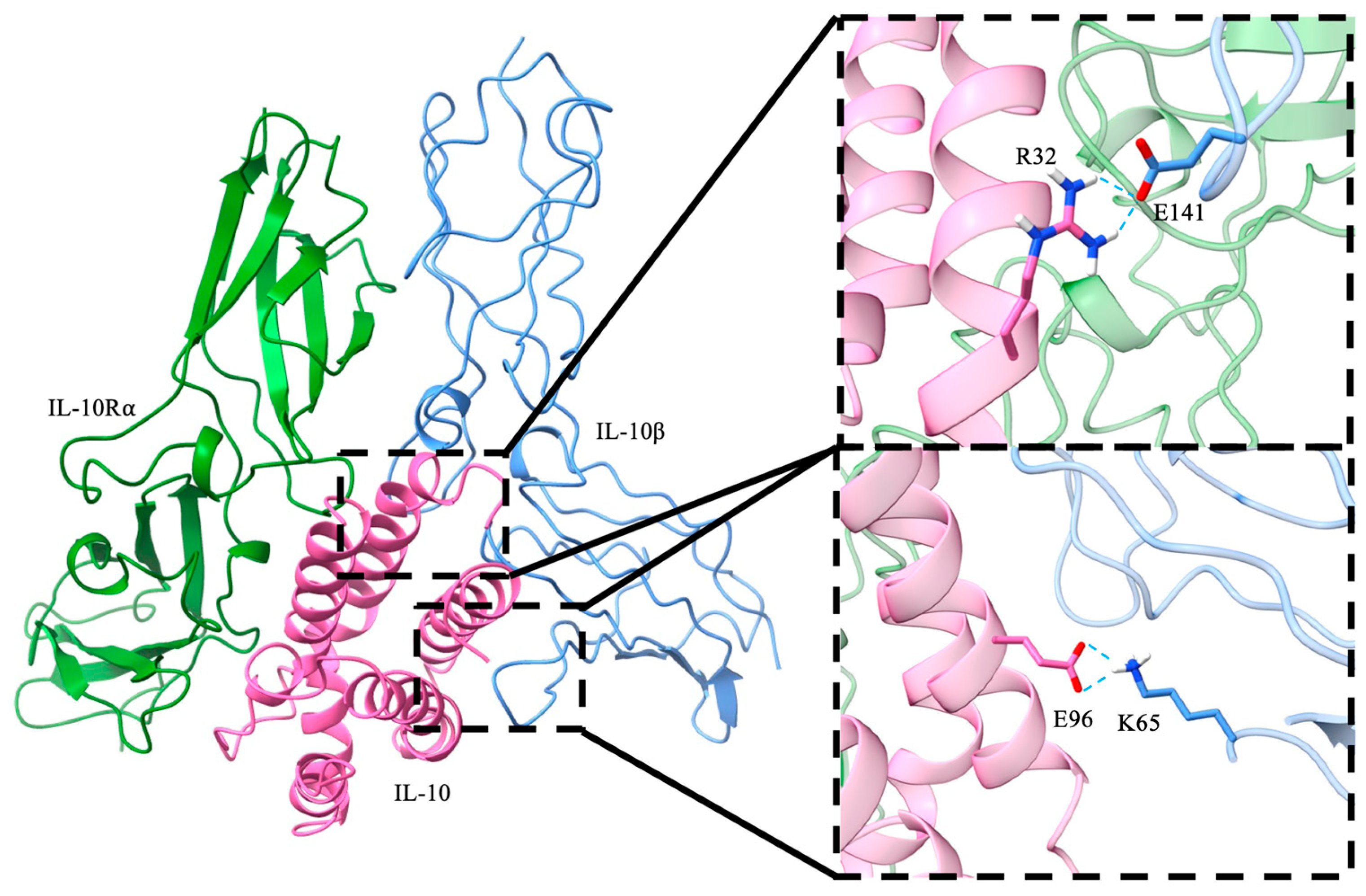 3.1. Computational Design of IL-10 Mutants