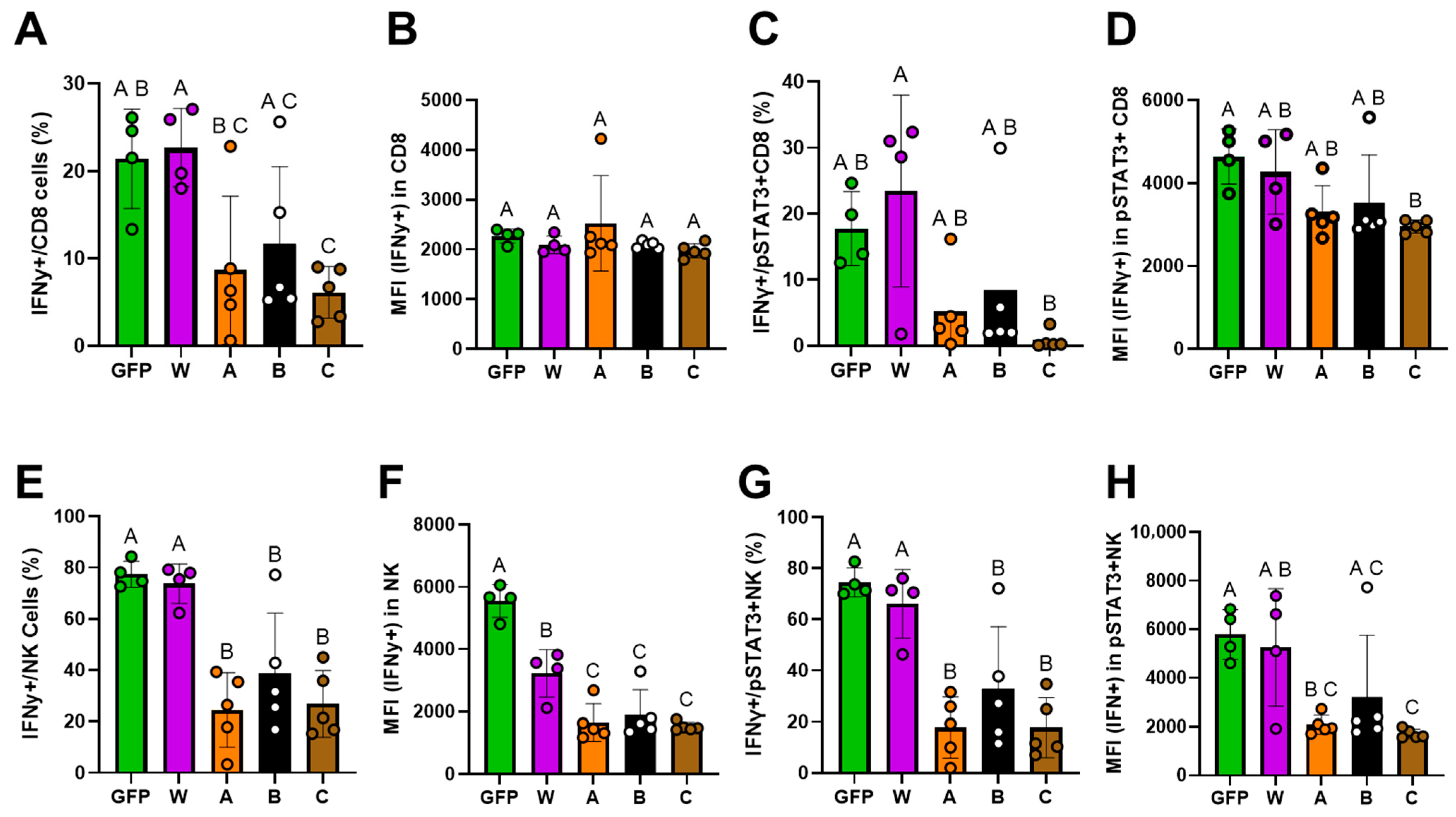 3.5. IL-10 Mutants Have Lower Activities in Stimulating NK and CD8+ T Cells