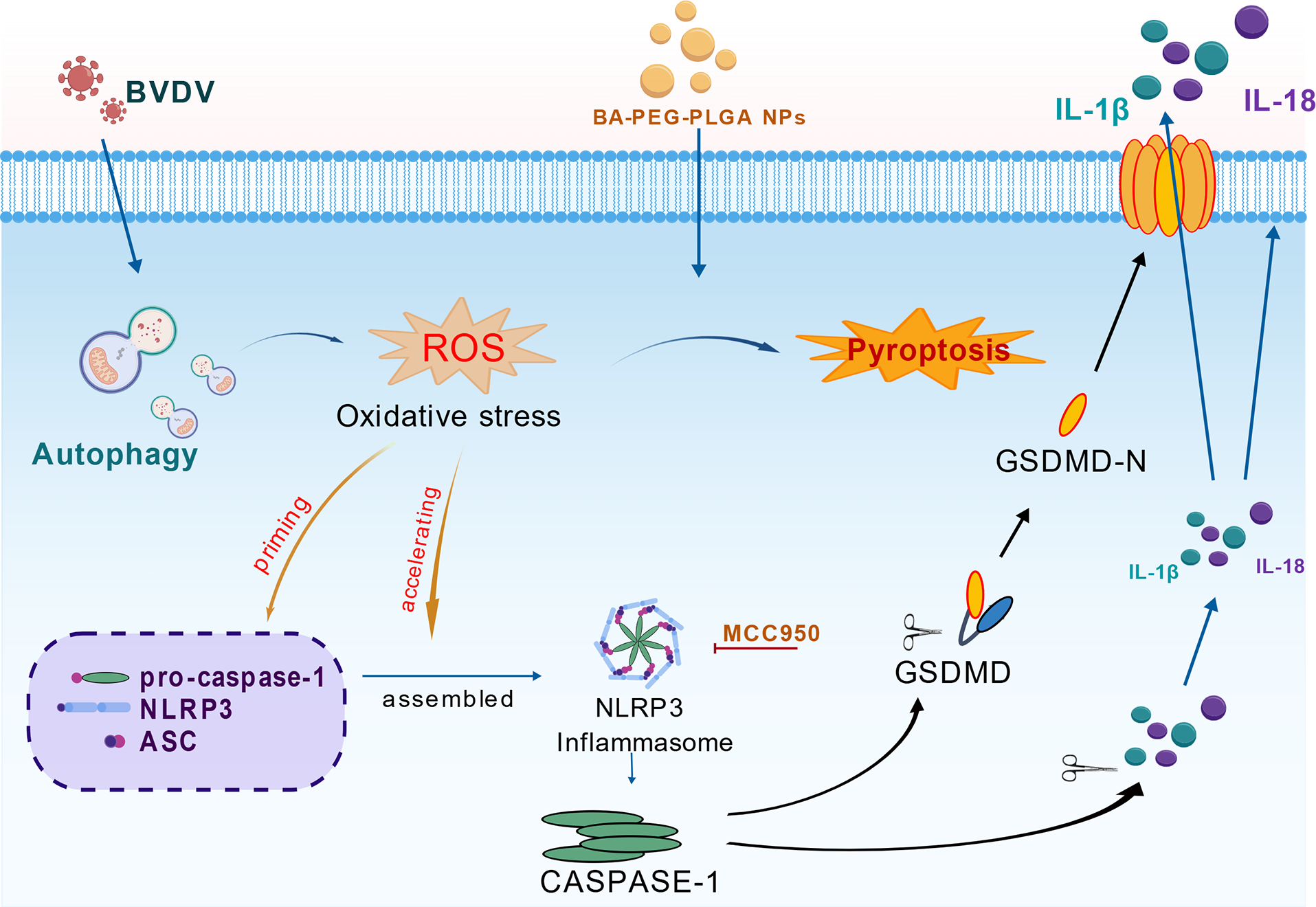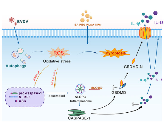 Chicago/Turabian StyleXing, Yanchao, Yingshan Jiang, Ting Ren, Aoyun Li, Yue Teng, Yanlu Li, Junxia Ma, Naichao Diao, Kun Shi, Jianming Li, and et al. 2026. "PEG-PLGA Co-Loaded Baicalin Mitigates Bovine Viral Diarrhea Virus-Induced Oxidative Stress and Inflammatory Responses Through Modulation of Autophagy and Attenuation of the NLRP3/Pyroptosis Regulatory Axis" Biomolecules 16, no. 4: 502. https://doi.org/10.3390/biom16040502