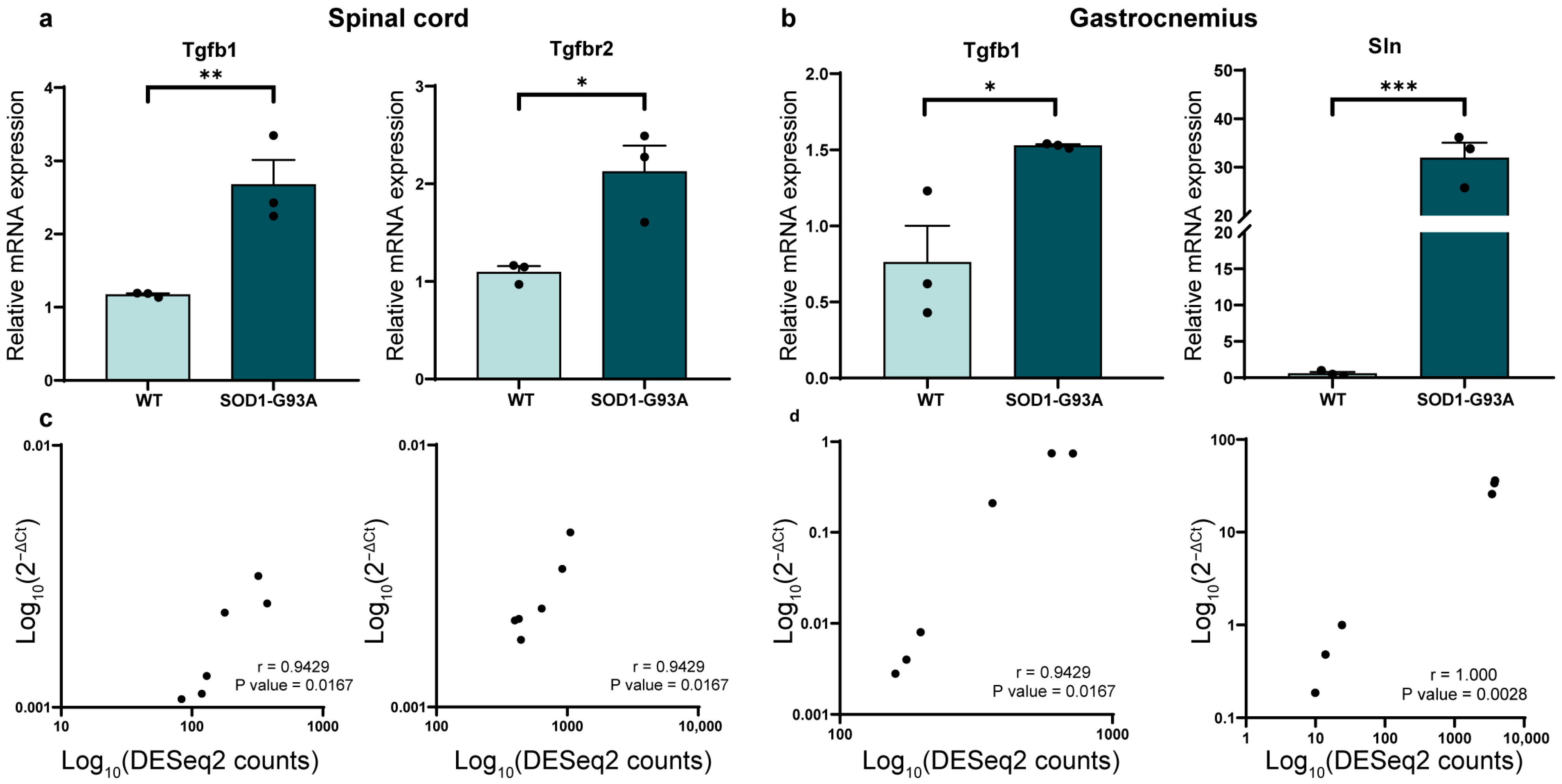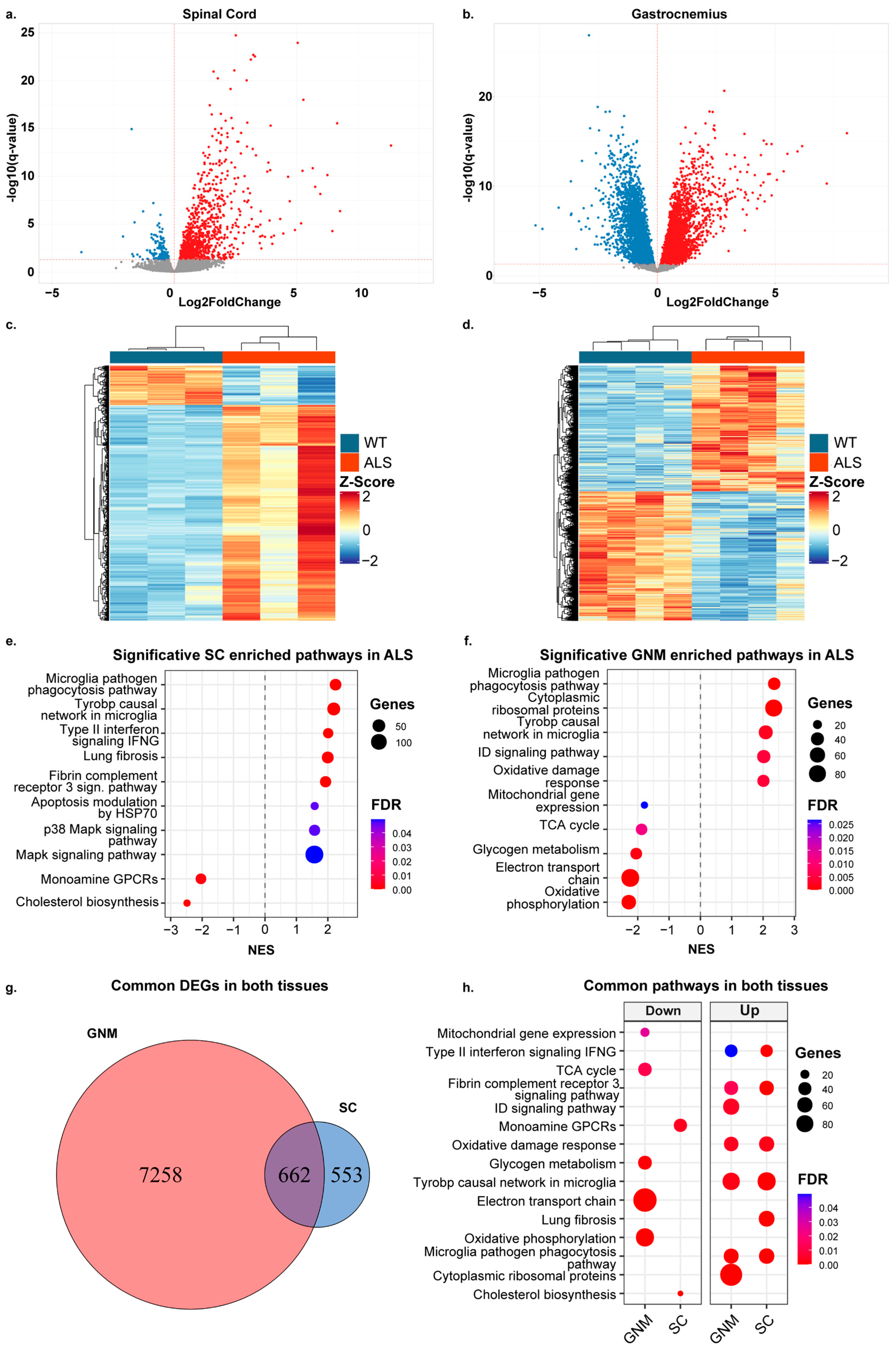 3.1. RNA-Seq Revealed Both Distinct and Common Pathways in SOD1-G93A Spinal Cord and Skeletal Muscle Tissues