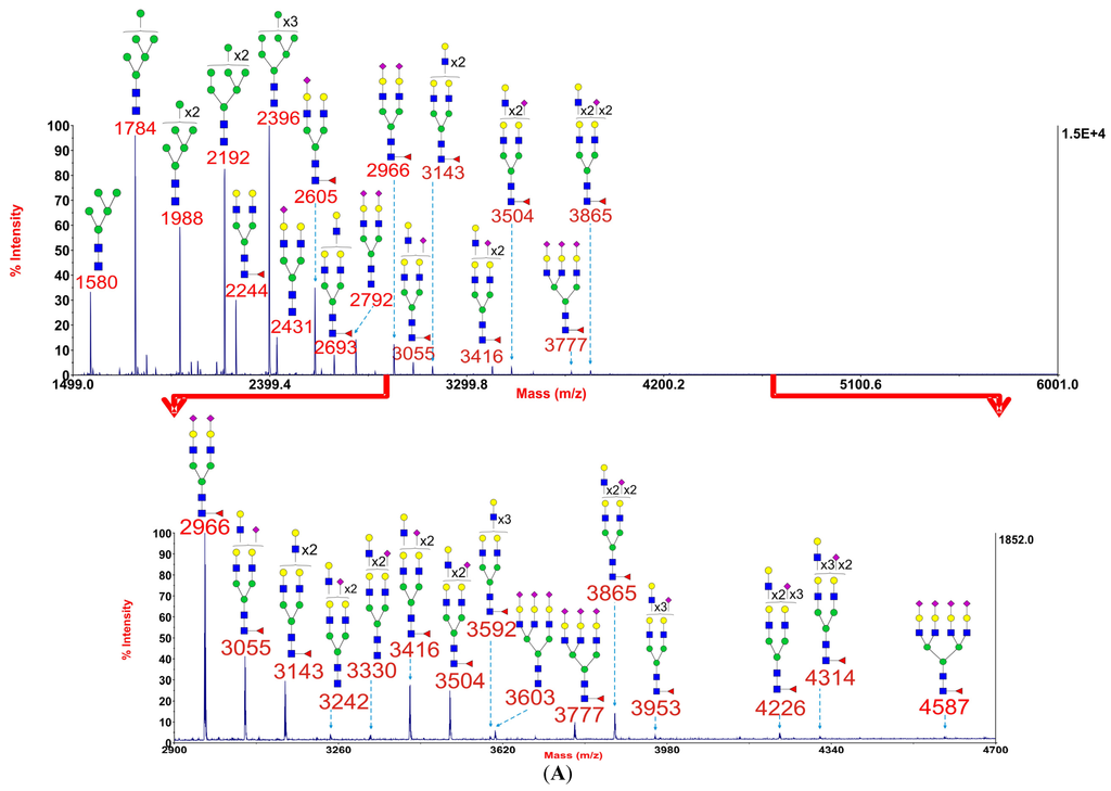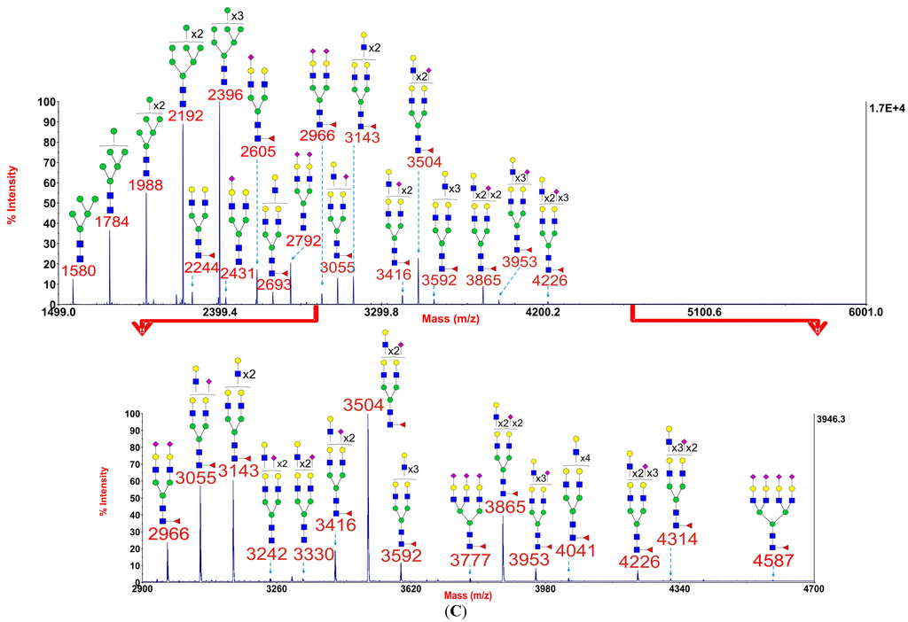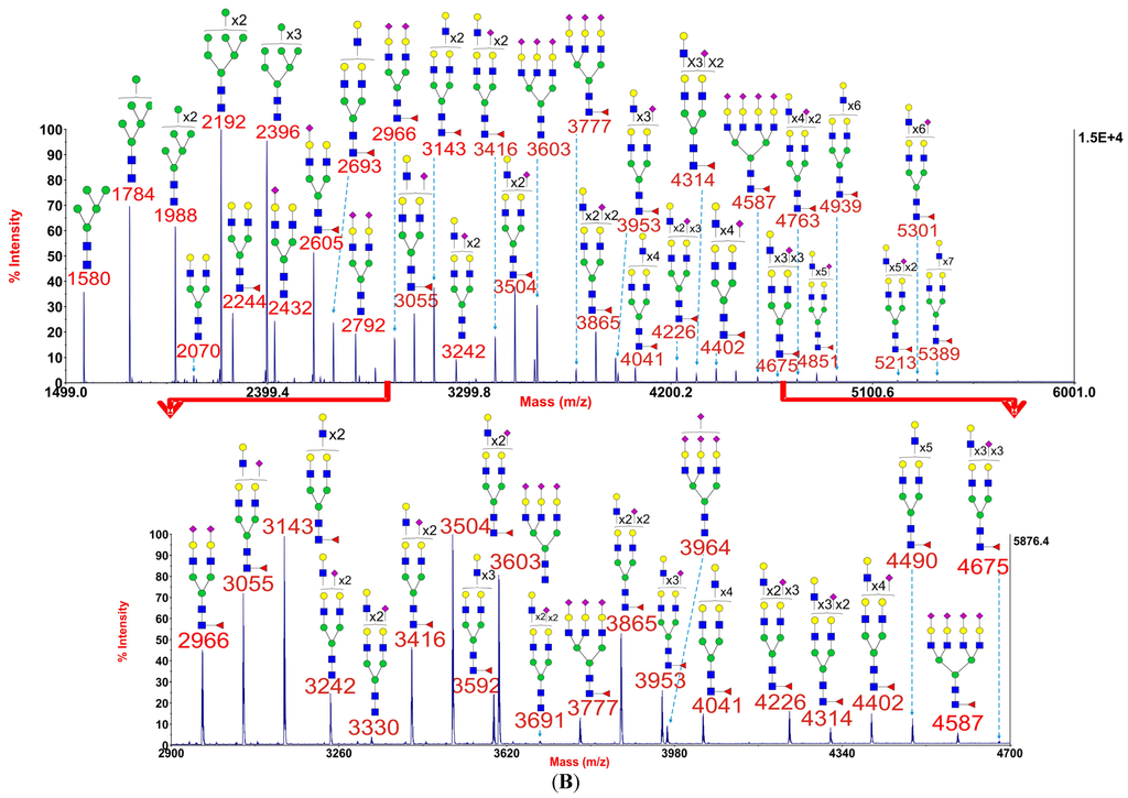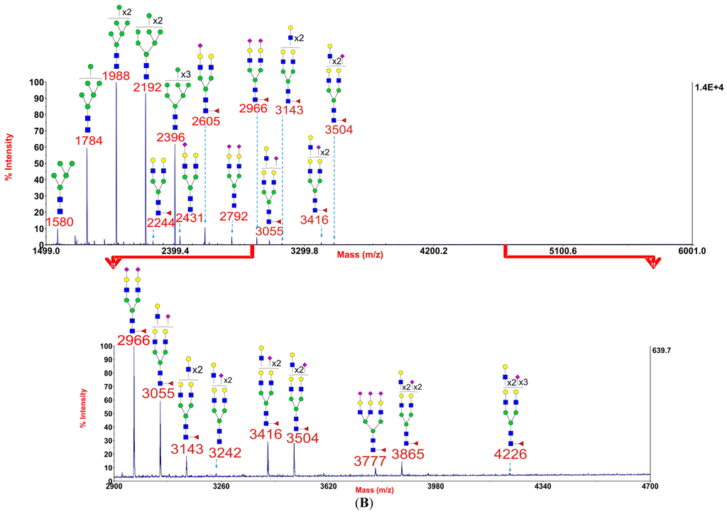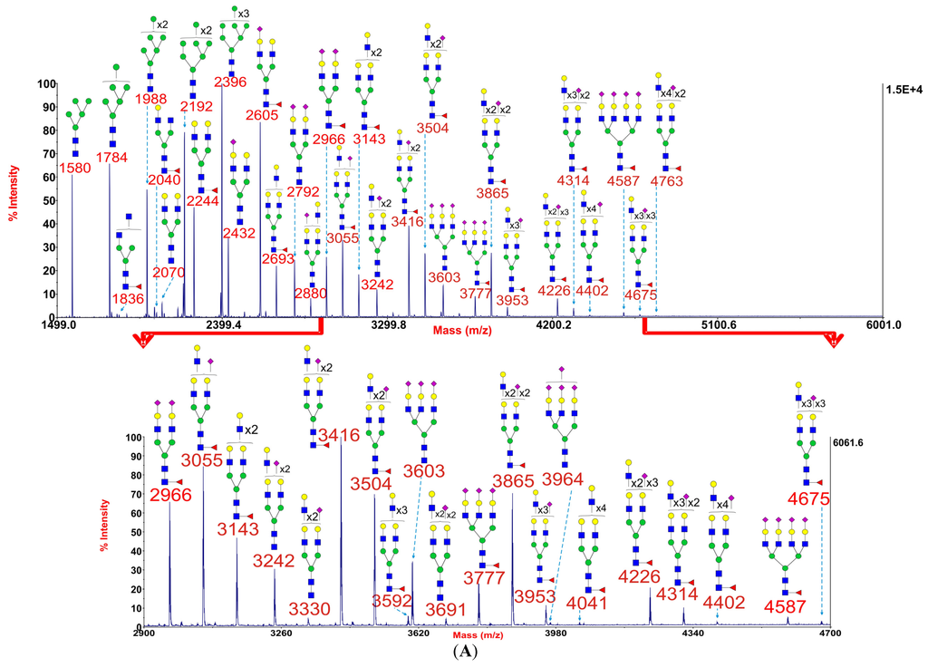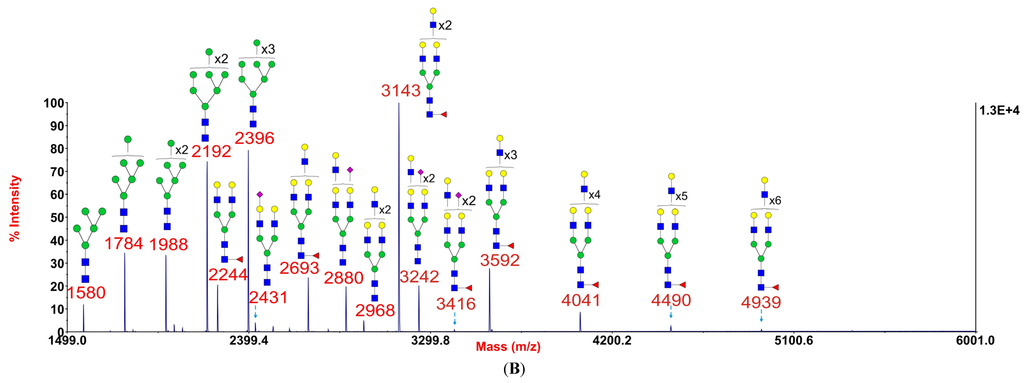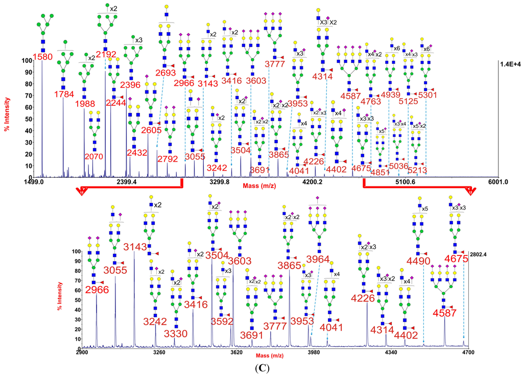 3.4. Mass Spectrometric Glycomic Analysis