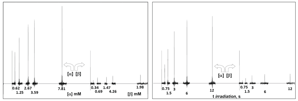 [α]total + [β]total = [2FDM]total; concentration used: 0.96; 1.94; 4.14; 5.57 and 12.1 mM