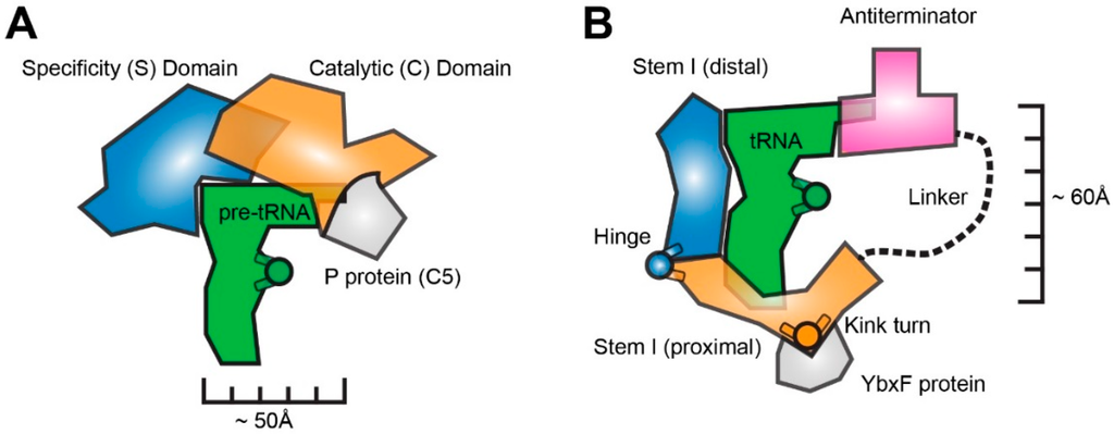 5.2. RNase P and T-box are Trans-Acting Molecular Calipers