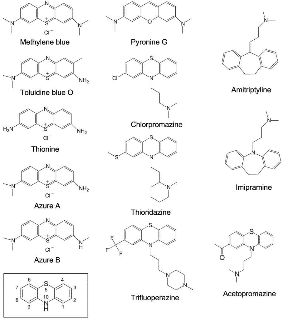 - Mayer, M.; Lang, T.; Gerber, S.; Madrid, P.B.; Gómez Pinto, I.; Guy, R.K.; James, T.L. Synthesis and testing of a focused phenothiazine library for binding to HIV-1 TAR RNA. Chem. Biol. 2006, 13, 993–1000. [Google Scholar] [CrossRef] [PubMed][Green Version]