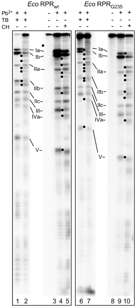 | RPR-Mediated Cleavage | Lead(II)-Induced Cleavage | ||||