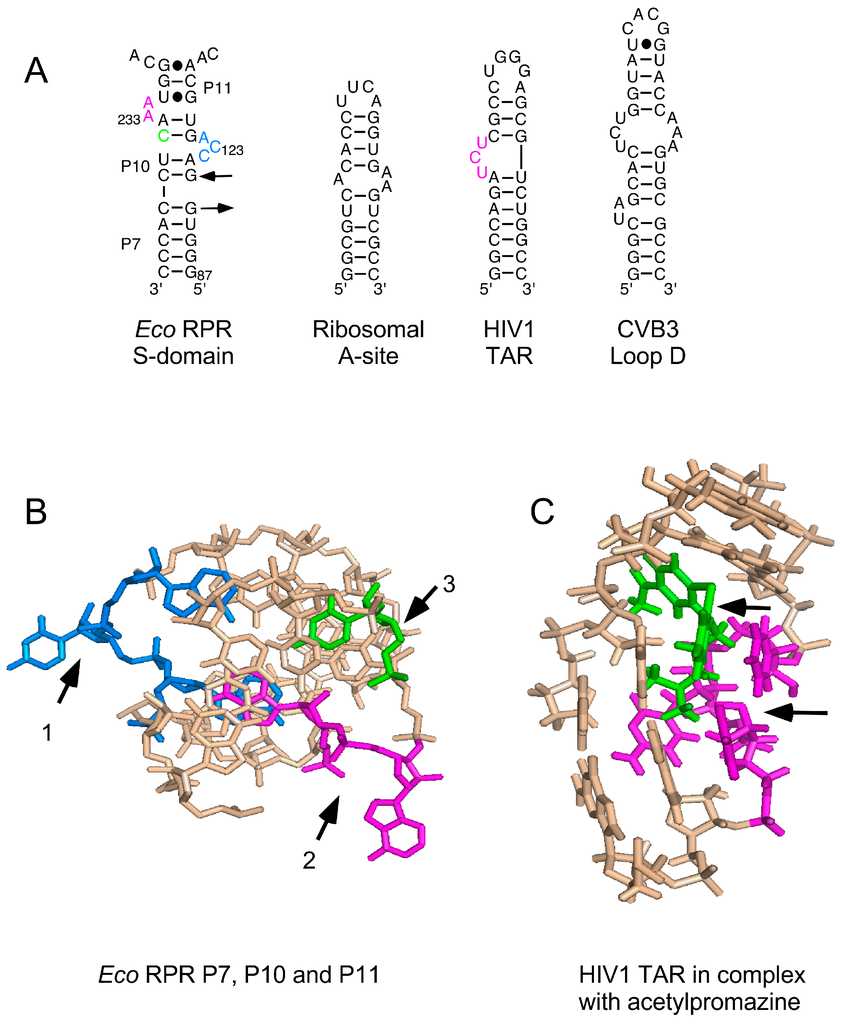 - Thomas, J.R.; Hergenrother, P.J. Targeting RNA with small molecules. Chem. Rev. 2008, 108, 1172–1224. [Google Scholar] [CrossRef] [PubMed]