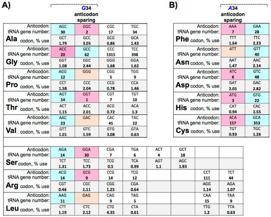 10. Large tRNAomes Disregard Guanine 34 Anticodon-Sparing and Adenosine 34 tRNA Genes