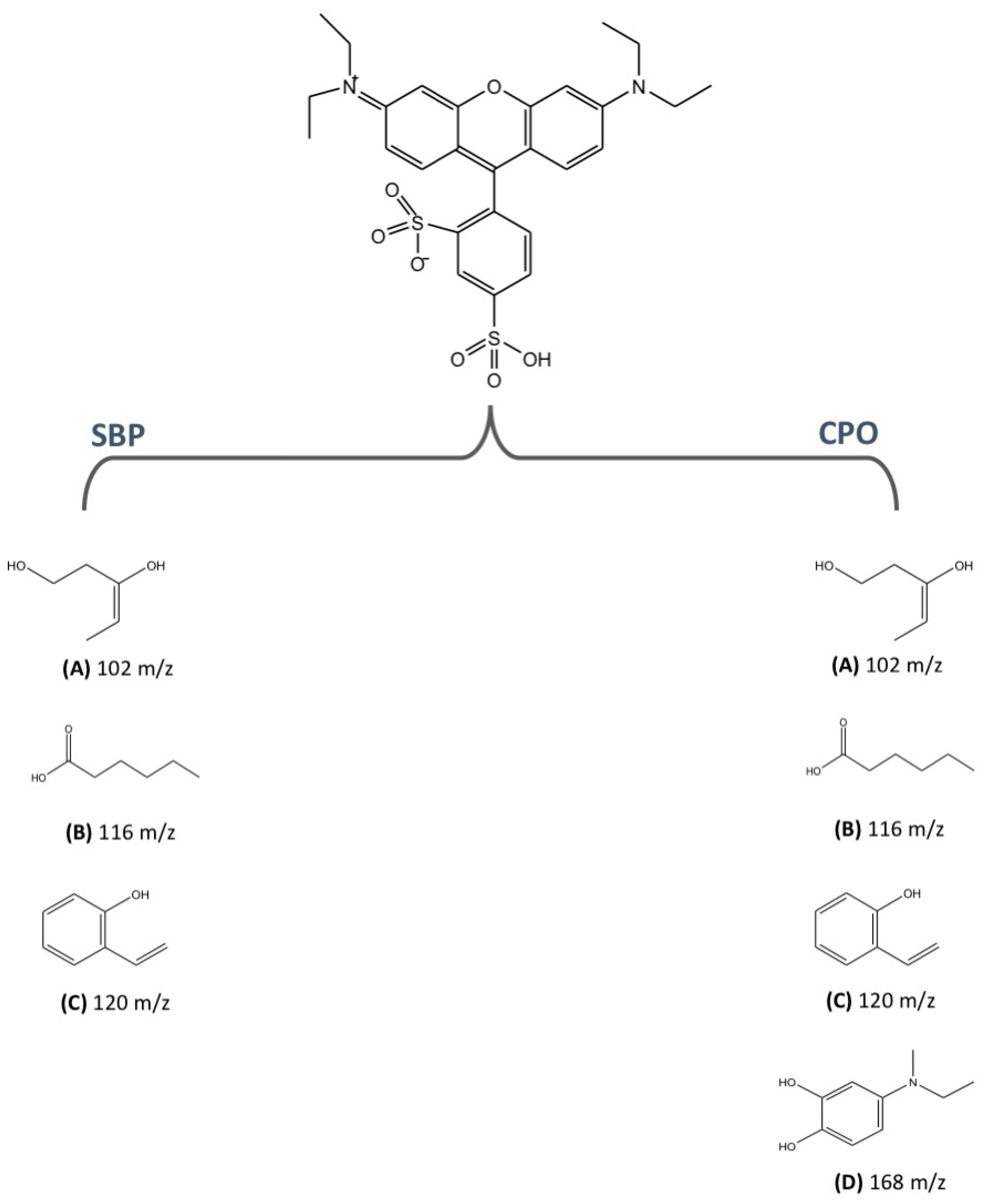 | Compound ID | m/z | RT (min) | SRB DYE + SBP | SRB DYE + CPO | ||