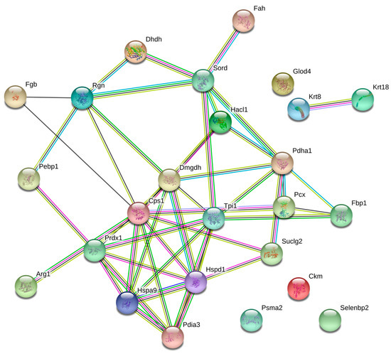 Another research group conducted a bioinformatics analysis of differentially expressed genes in the liver of patients with diabetes [45]. However, the metabolic pathways found in the study and those found by our team do not match. Differences may be due to the fact that Kutmon et al. analyzed gene expression, while we analyzed protein expression, as well as different species: humans and mice, respectively [45].