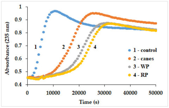 - Gharwalová, L.; Hutár, D.; Masák, J.; Kolouchová, I. Antioxidant Activity and phenolic content of organic and conventional vine cane extracts. Czech J. Food Sci. 2018, 36, 289–295. [Google Scholar] [CrossRef]