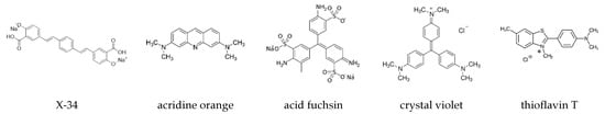 - Buell, A.K.; Dobson, C.M.; Knowles, T.P.J.; Welland, M.E. Interactions between Amyloidophilic Dyes and Their Relevance to Studies of Amyloid Inhibitors. Biophys. J. 2010, 99, 3492–3497. [Google Scholar] [CrossRef]