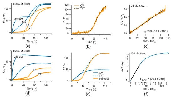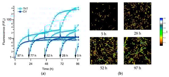 3.2. CV and ThT Report Identical Amyloid Kinetics but with Distinctly Different Sensitivities