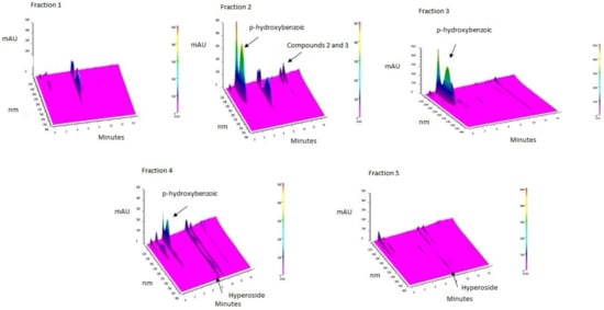 - Andriamadio, J.H.; Rasoanaivo, L.H.; Benedec, D.; Vlase, L.; Gheldiu, A.M.; Duma, M.; Toiu, A.; Raharisololalao, A.; Oniga, I. HPLC/MS analysis of polyphenols, antioxidant and antimicrobial activities of Artabotrys hildebrandtii O. Hffm. extracts. Nat. Prod. Res. 2015, 29, 2188–2196. [Google Scholar] [CrossRef] [PubMed]
