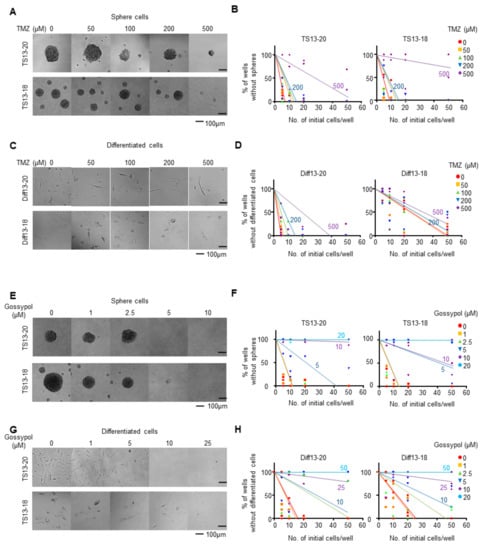 Cells were dissociated as single cells using Accutase (#561527; BD Biosciences, San Jose, CA, USA) and were serially diluted from 50 to 5 cells per well in 16 replicates into 96-well clear flat bottom ultra-low binding microplates (#3474; Corning, Corning, NY, USA) in growth media with or without gossypol or TMZ. Following two weeks, empty wells were counted. Extreme limiting dilution analysis was performed using the software ELDA (Extreme limiting dilution analysis) [].