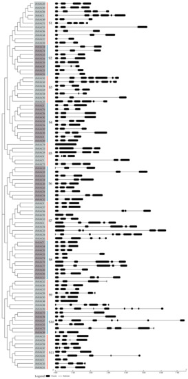 2.2. Gene Structure and Conserved Motif Analyses of PeNACs