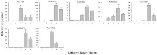 2.8. Expression Changes in Different-Height Shoots of Moso Bamboo