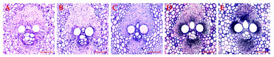 - Yang, J.H.; Wang, H. Molecular Mechanisms for Vascular Development and Secondary Cell Wall Formation. Front. Plant Sci. 2016, 7, 387. [Google Scholar] [CrossRef] [PubMed]