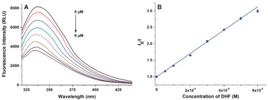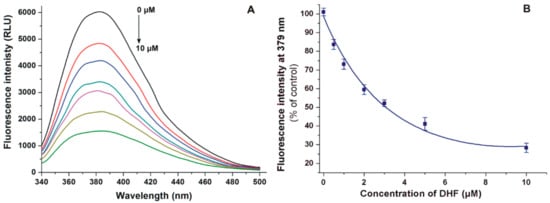 3.1. Interaction of DHF with HSA Based on Fluorescence Quenching Studies