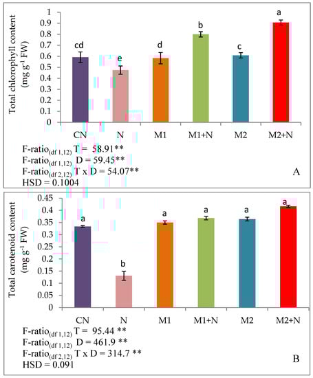 | M1 + N | 0.718 ± 0.0193 b | 8.878 ± 0.2081 b | 1.351 ± 0.0327 a | 11.778 ± 0.4950 b |