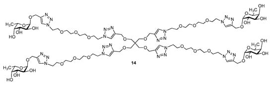 - Cecioni, S.; Praly, J.P.; Matthews, S.E.; Wimmerová, M.; Imberty, A.; Vidal, S. Rational design and synthesis of optimized glycoclusters for multivalent lectin-carbohydrate interactions: Influence of the linker arm. Chem. Eur. J. 2012, 18, 6250–6263. [Google Scholar] [CrossRef]
